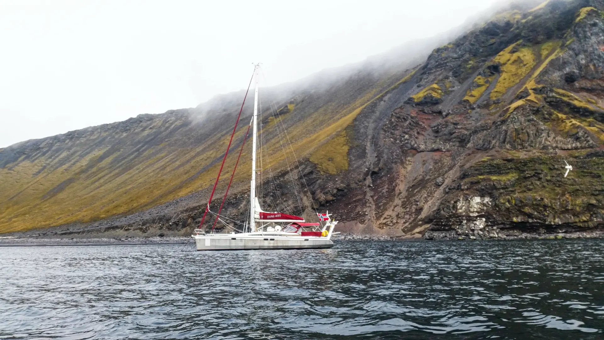 Nederlenderne hadde i mange år drevet stor hval- og hvalrossjakt her. Og fremdeles finnes beinrester etter denne jakten. Verdens nordligste aktive vulkan finner du også her. Vi ankommer Jan Mayen etter fin, men tøff seilas i mye vind. Båten føles mer og mer trygg, vi er aldri redde. Brygger eller havn finnes ikke. Etter mange forsøk, får vi endelig kontakt med kommandanten på øya. Vi måtte cirka én nm unna for at våre radiosignaler kunne fanges opp. Etter hans anbefaling, ankrer vi opp på vestsiden og joller inn til et strandhugg. Vi føler oss som ekte eventyrere.