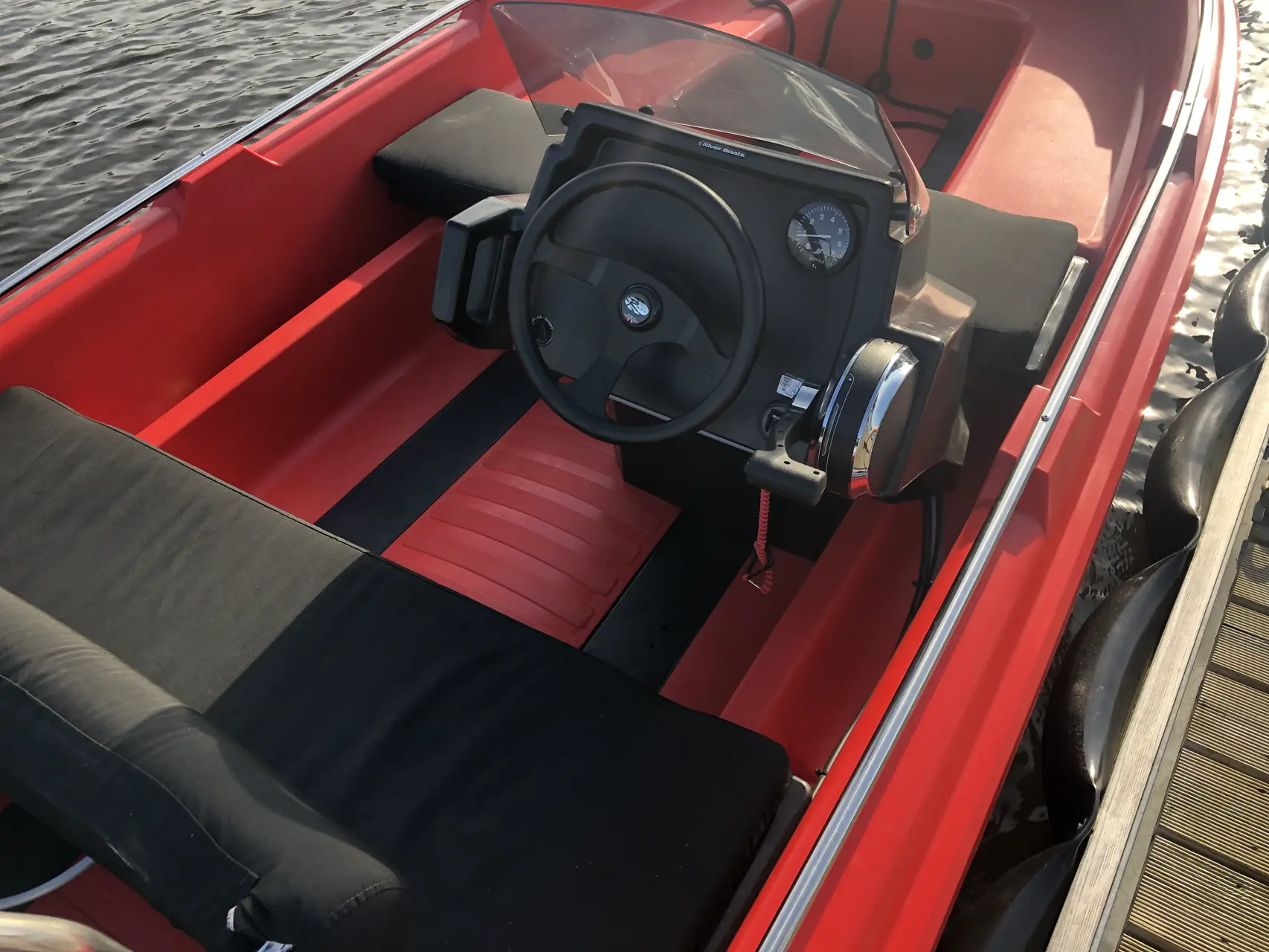 Også på en 15-foter ønsker brukerne stadig mer ekstrautstyr. Flaggskipet til River leveres enten med eller uten styrekonsoll – såkalt XR-sett. På utstyrslisten for øvrig finnes putesett, ryggstøtte, targabøyle, badestige og kartplotter. I tillegg finnes en finurlig to-leddet plate som gjør at nærmest hele baugpartiet kan omgjøres til solseng – og akkurat det er musikk i ørene for Leo, som har savnet dette på de mindre ungdomsbåtene.