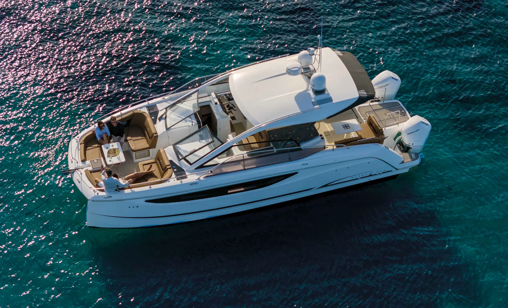 Toskrogsbåten fra Four Winns kommer også med «Foil Assist», en innovasjon som også er nominert til European Powerboat of the Year 2025 i katamaran-kategorien. Den ble for første gang vist under La Rochelle-messen i fjor. Kort fortalt får båten to foiler mellom de to skrogene, og skal bidra til cirka 25 % lavere drivstofforbruk fra 20 knop.