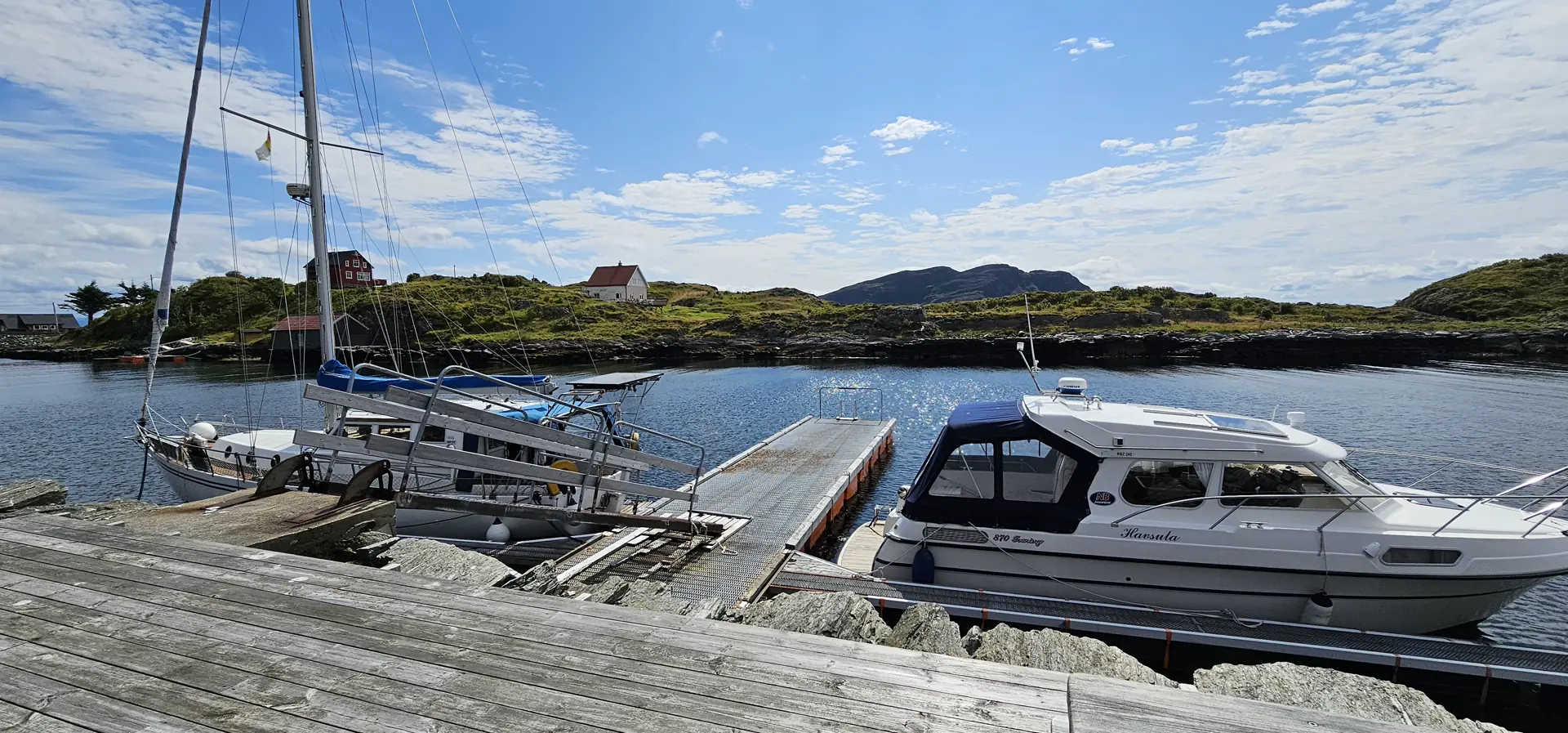 I selve uthavnen, er det ikke strøm eller vann, men flytebrygge med utriggere. Her er kortreist, mat om du tar deg tid til å fiske den selv.
