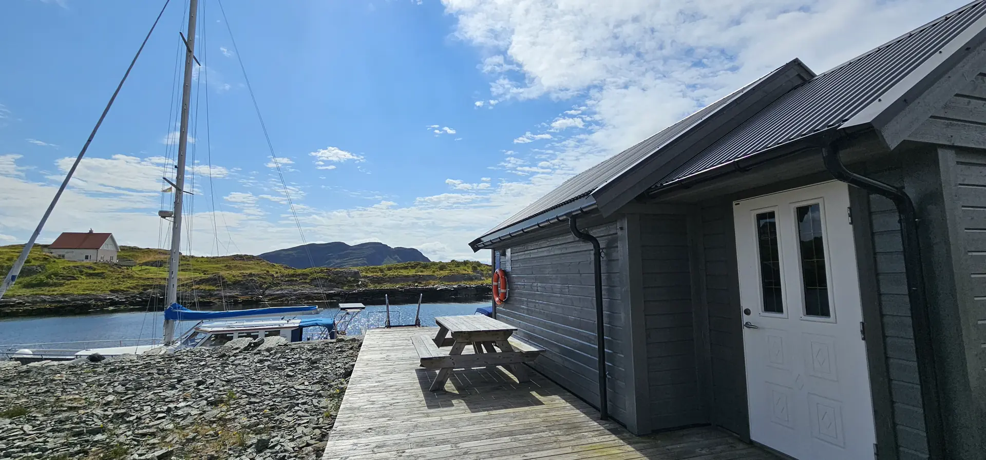 Hytten inneholder felles sittegruppe med stoler og bord. En stor grill som kan benyttes og utvendige benker med bord. Her er du som båtgjest trygt omringet av molo, lun havn og fantastisk utsikt.