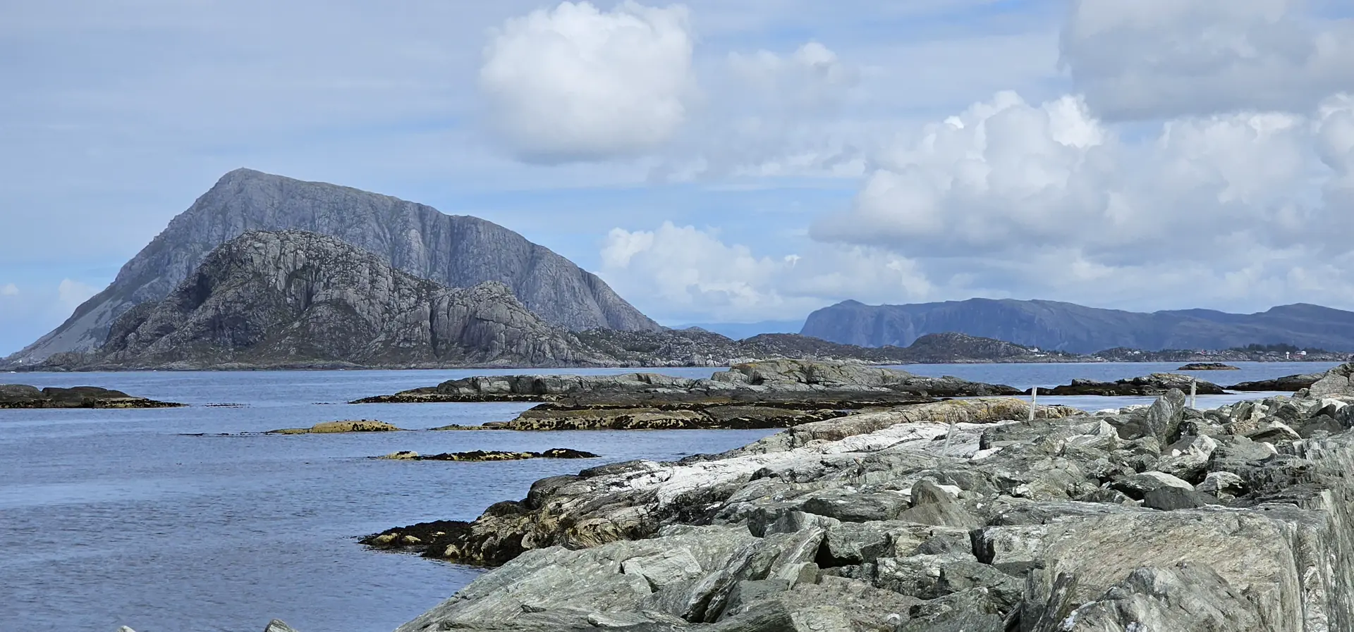Ser du litt mot sørvest ser du direkte på Kinnaklova, fjellet med den dype kløften. Kloven er viden kjent og brukt som seglingsmerke langsmed kysten. Fjellet er på øyen Kinn, som også er en historisk plass. Mest kjent er Kinnaspelet som settes opp hvert år.