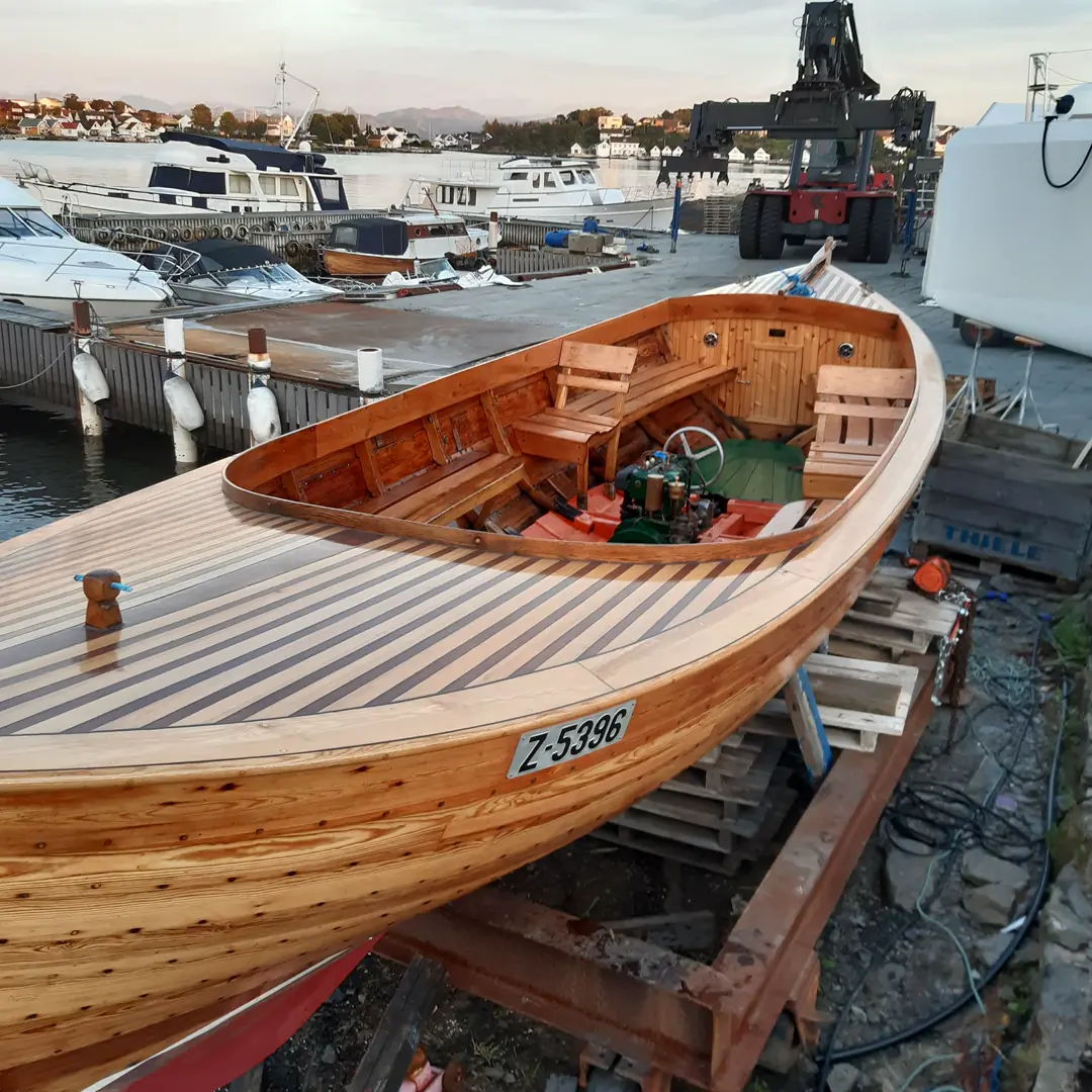 Eivind brukte i overkant av to år på jobben. Alt av treverk ble handlet inn lokalt i Ryfylke, før det møysommelig ble skåret til og tilpasset hjemme i garasjen. Målet var å få båten tilbake i original stand.