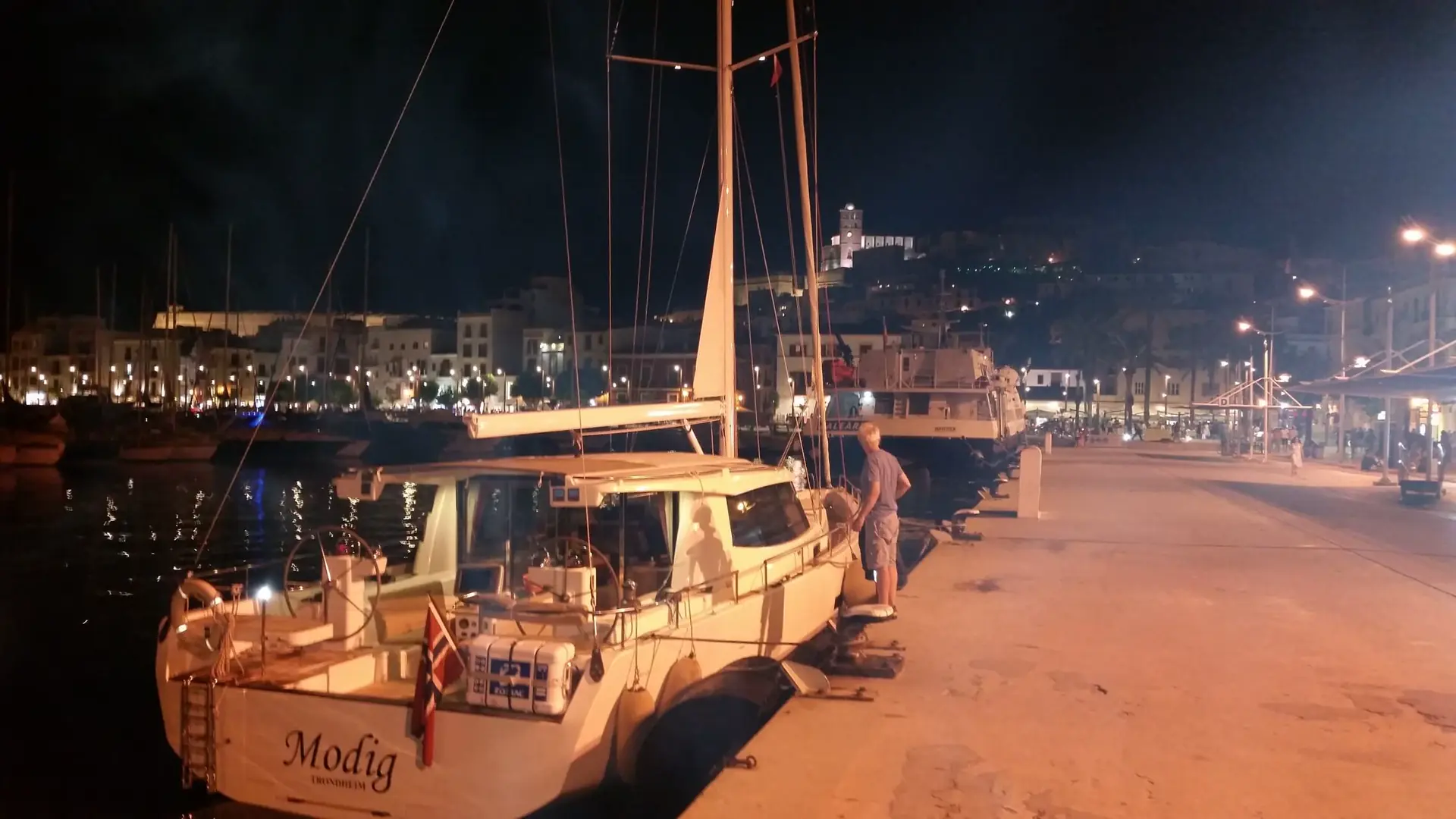 No var det berre Tom og meg igjen. Me sette kursen rett på Ibiza og ein liten pit stop der før kurs rett mot Benidorm på fastlandet av Spania. Me la oss til midt i hamna på Ibiza. På hurtigbåtkaien. Tok sjansen på at da ikkje gjekk hurtigbåt om natta. Me var ikkje så lenge på Ibiza, berre nok til å nyta ei øl, oppleve ein gay parade, få med oss ein stor utandørskonsert med masse folk og utruleg mykje liv og røre. Artige kontraster i Middelhavet. Frå heilt åleine på havet, til omringa av folk og paradar.