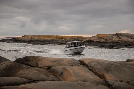 Med største motoralternativ på 300 hestekrefter klarer båten en toppfart på 65 knop.