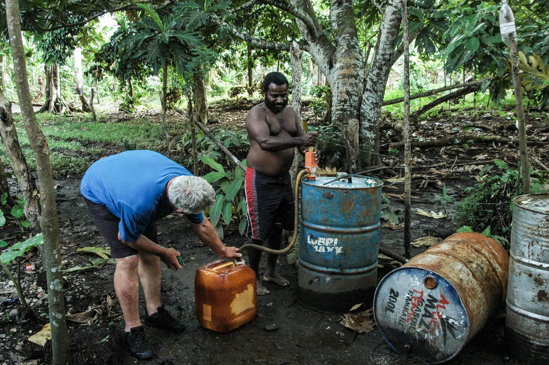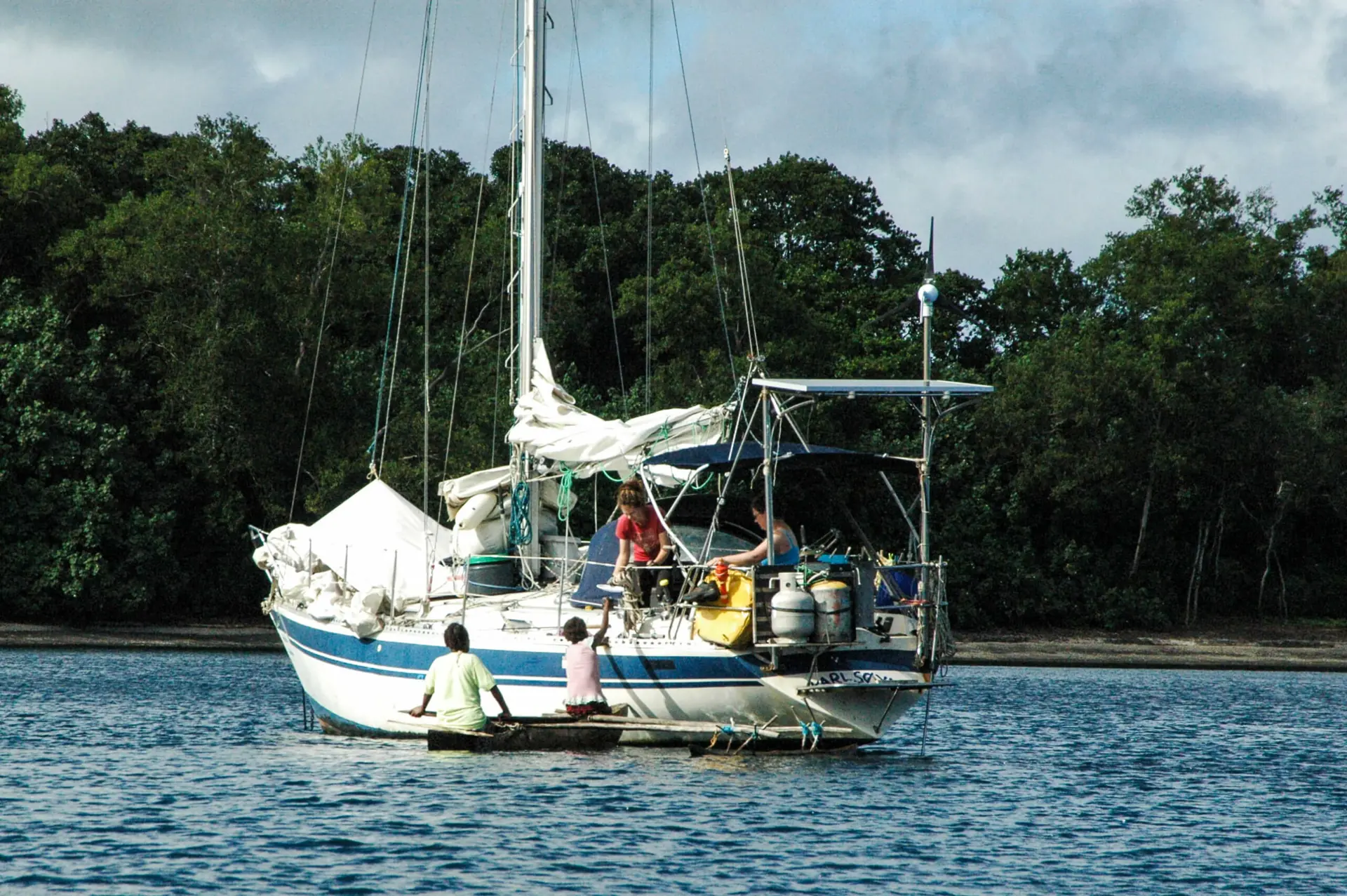 Siden vindforholdene mellom øyene var såpass variable fikk vi øvd en hel del. Som om ikke det var nok sørget også autopiloten – etter snaue fem års tro tjeneste – for trøbbel. Nå som vi måtte bytte seil og styre manuelt 24/7 fikk vi en annen følelse for seilingen, og hvor mye hjelp man har nå til dags takket være teknologiens framskritt. Selv om manøverne var mer omstendelige, var det ikke noe stort savn etter rullefokka. Framme ved destinasjonen lot vi ankeret synke til bunns foran den mest idylliske jungelscenen man kan tenke seg. Noen lokale jenter kom med kanoen sin for å gjøre byttehandel og straks hadde vi fersk fisk til lunsj. Ved munningen av en smal elv som fulgte fjellheimen ned mot stranda lå kokosnøttene strødd.