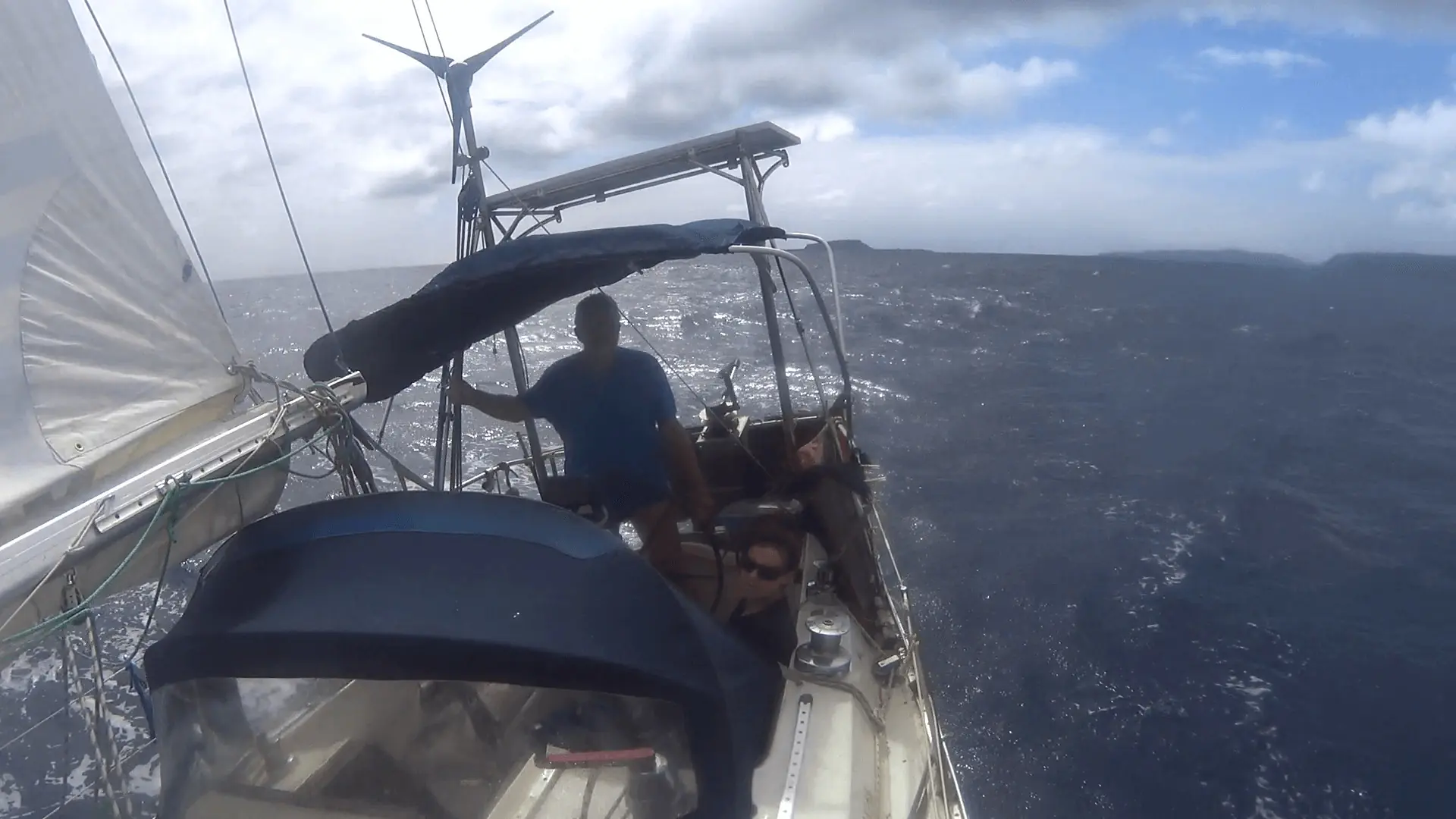Straks befant vi oss i forhold som best kan beskrives som en blanding av vaskemaskin og berg-og-dal-bane, med bølger på opp mot fire meter. Båten danset fra topp til topp mens moren til Paul hadde inntatt køya og ønsket seg tilbake til toppen av vulkanen på Tanna, hvis svovel og sprutende lava ikke på langt nær virket så skummelt lenger. Til tross for strabasene storkoste vår trofaste styrmann, Lübbe senior, seg som vanlig bak rattet. Selv var vi ikke engstelige – det at «Amanda» tåler en støyt hadde vi fått erfare – dog anspente. Heldigvis hadde vi strømmen med oss, som gradvis pushet oss mot roligere farvann. Den siste motvindsetappen bestod vi derimot med glans. Trioen storseil, fokk og stagseil viste seg å fungere svært bra hele veien inn til ankringsplassen.