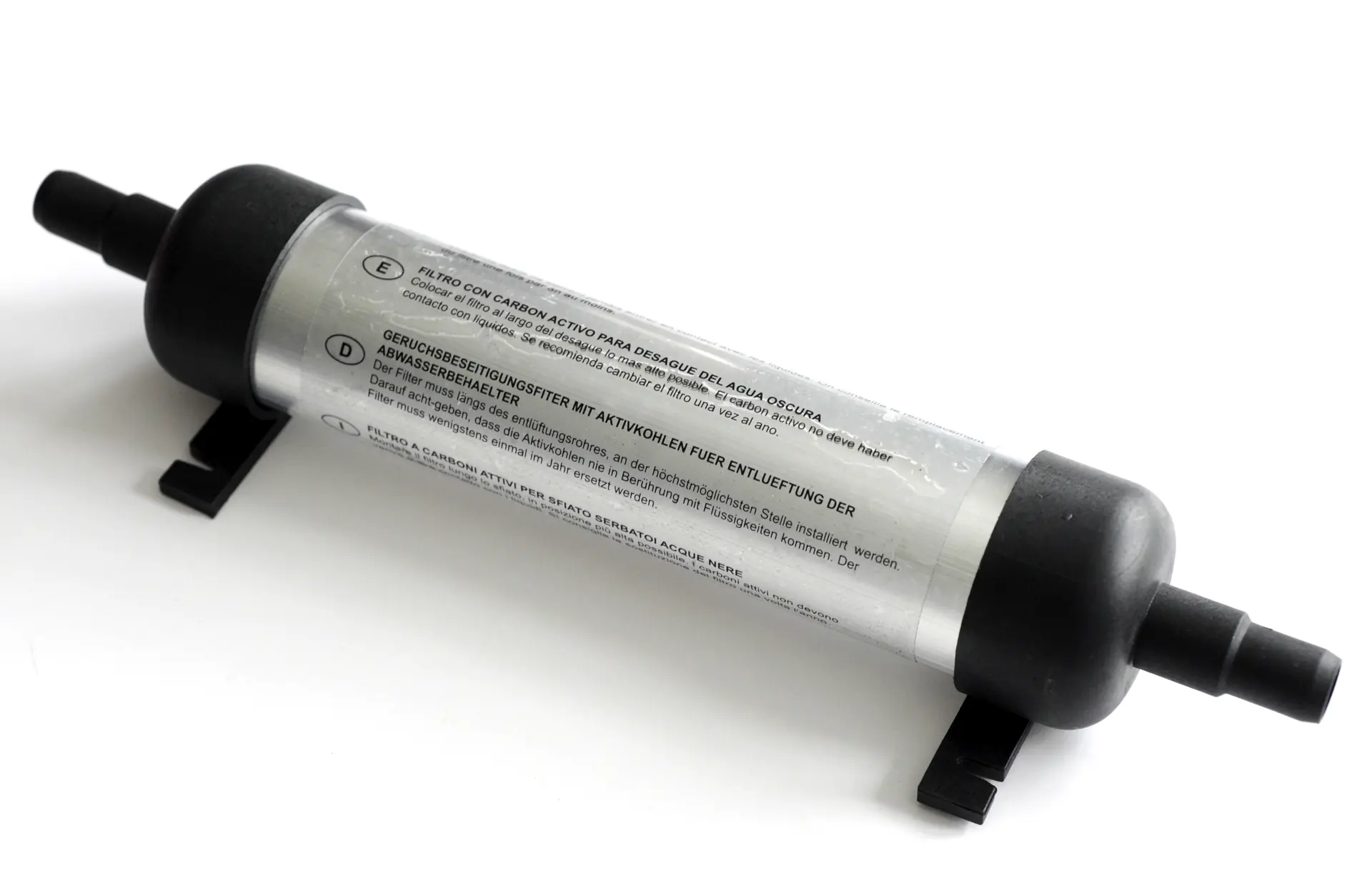 Luftslangen for septiktanken bør rengjøres ofte, og i alle fall før båtsesongen tar til. Ved bruk av kullfilter på lufteslangen skal dette byttes ut hvert år. Kullfilter hindrer effektiv at lukten fra septiktanken sprer seg til omgivelsene og bidrar til å opprettholde riktig bakteriemiljø i tanken. Demonter gjerne slangen og spyl gjennom. Husk at dersom du bruker kullfilter på utluftingen, så tåler ikke dette vann. Om du ikke allerede har kullfilter kan dette monteres når du tar vedlikehold på toalettsystemet. Nytt kullfilter koster 4-500 kroner. Dersom lufteslangen også brukes til overløp skal du ikke bruke kullfilter.