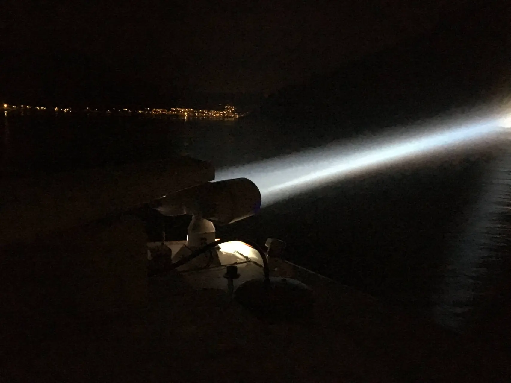 For å enklere se sjømerker og staker (som har refleks), land eller brygga når du er fremme, er lyskaster et smart verktøy. Lyskastere finnes også i håndholdte versjoner. Husk imidlertidig å bruke det med omhu. En lyskaster kan blende andre båteiere, så ikke kjør med lyskasteren på hele tiden.