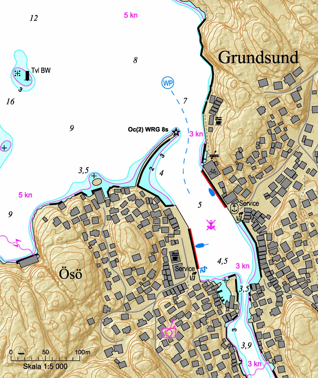 Det finns en kiosk i hamnen och till mataffären och ombudet för Systembolaget är det omkring 300 meter att gå från östra kajen. I Bottnahallen, som ligger 500 meter öster om hamnen, finns en lekplats, ett gym samt en tennis- och fotbllsplan.