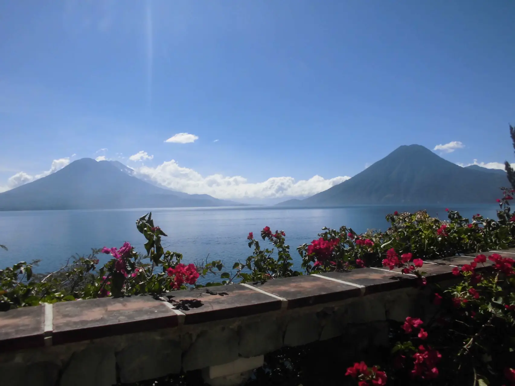 Det varte ikke lenge før praten var igang, og mens Gustav ville høre om turen over Det karibiske hav var vi nysgjerrige på historien bak hans spennende investering langt oppe i de sørlige fjelltraktene. Beliggenheten var det i alle fall ingenting å si på. Med utsikt over den digre innsjøen omringet av hele fem vulkaner hadde han skutt gullfuglen. For oss var dette noe vi aldri hadde sett lignende til, og vi kunne sitte i timesvis å se utover den innbydende sjøen og vulkanene som speilet seg i vannflaten.
