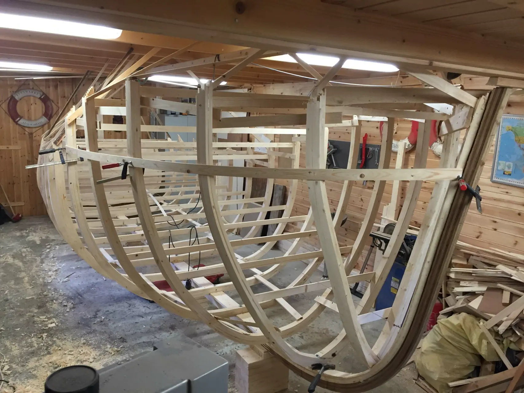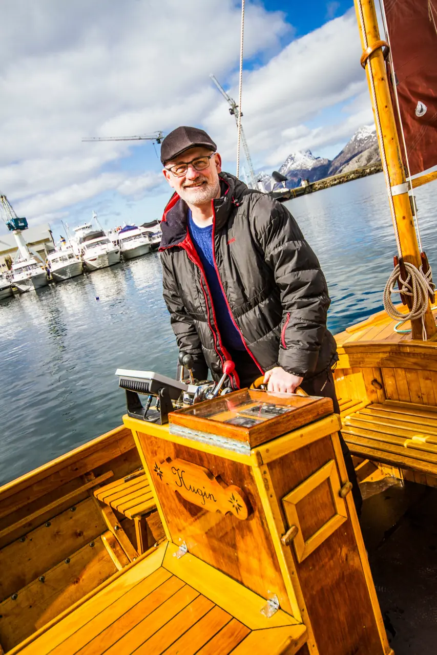 – Jeg startet å bygge denne og en tilsvarende i 2012 som ble sjøsatt året etter. En til meg og en til svogeren min. Hugin er 22 fot lang og har en Nanni-diesel på 38 hestekrefter, i tillegg til en mesan – et seil for å ligge rett opp mot vinden når du fisker. Jeg har tegnet henne selv og hovedlinjene er med utgangspunkt i en snekke på nitten fot som jeg gjorde bredere, lengre og dypere. Jeg tegner for hånd, bordgang for bordgang, men her handler det også om å bruke øynene underveis og se at linjene henger på greip. Totalt kalkulerer jeg med syv hundre arbeidstimer på denne båten, forteller Nygård engasjert.