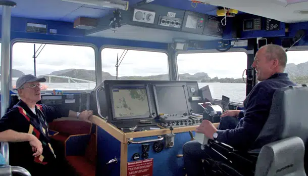 - Høyrer av og til på radio og musikk på kvelden når vi sit inne i salongen. Vi syng ein del på båten, mest ungane då. Skulle hatt trekkspelet med meg, men det tåler ikkje fukt så bra.