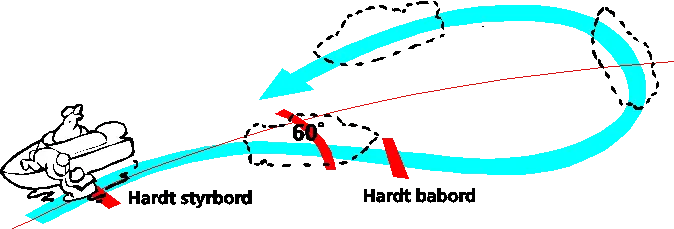 Det er ulike måter å manøvrere på i slike situasjoner. En grei manøver er «Williamsons turn». Dette går ut på å bruke roret hardt over (svinge maks) til en av sidene til du er omtrent 60 grader ute av opprinnelig kurs. Så tar du roret hardt over til den andre siden helt til du er tilbake på motsatt kurs av der du startet. Det som er spesielt bra med denne manøveren er at du havner tilbake i ditt eget kjølvann.