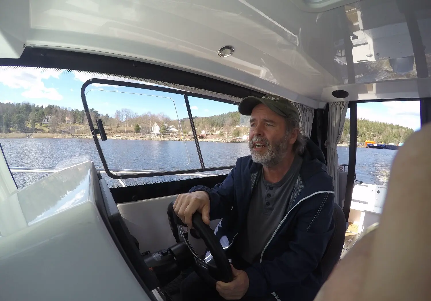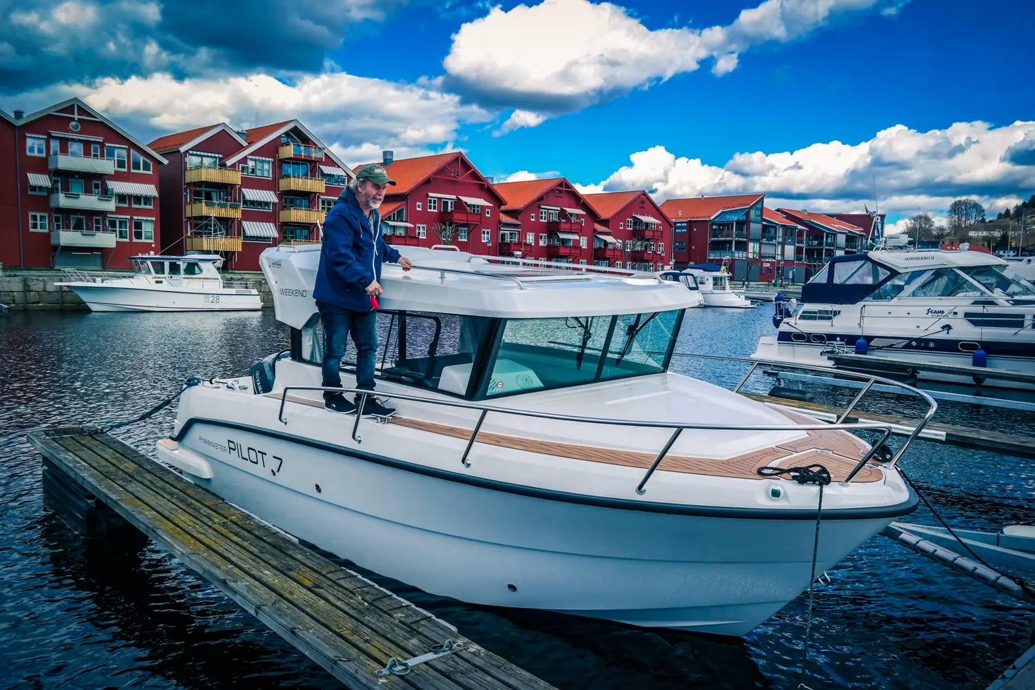 – Joda, det ble flere båter. En 20 fots Ibiza, så en Beneteau Antares 650 og deretter et par Vikneser før denne vi sitter i nå – en Finnmaster P7 Weekend.