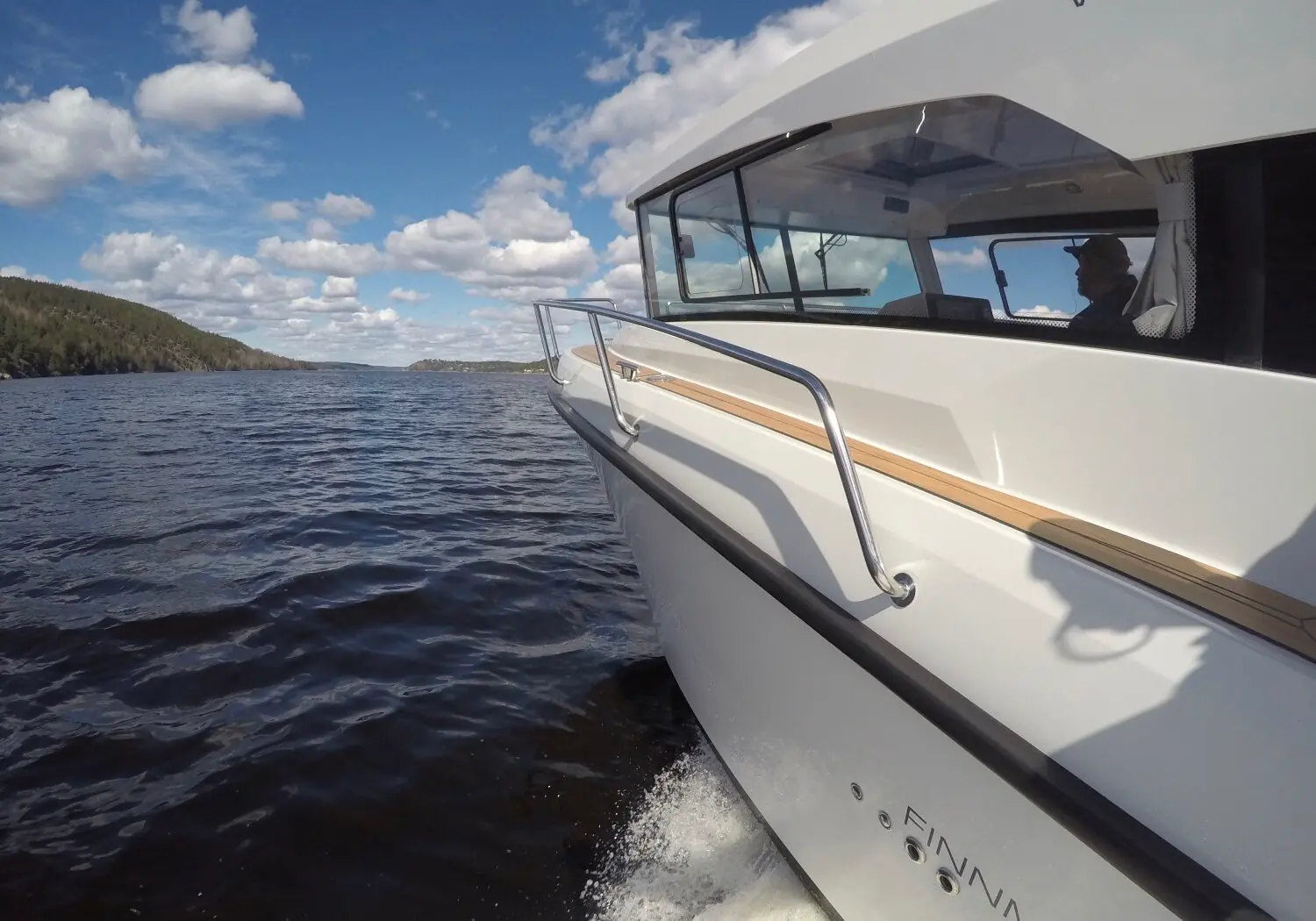 Jeg spør Henning, som nå har lagt Finnmaster ´n i god plan på vei inn mot Halden: – Har du vært på grunn, spør jeg forsiktig.