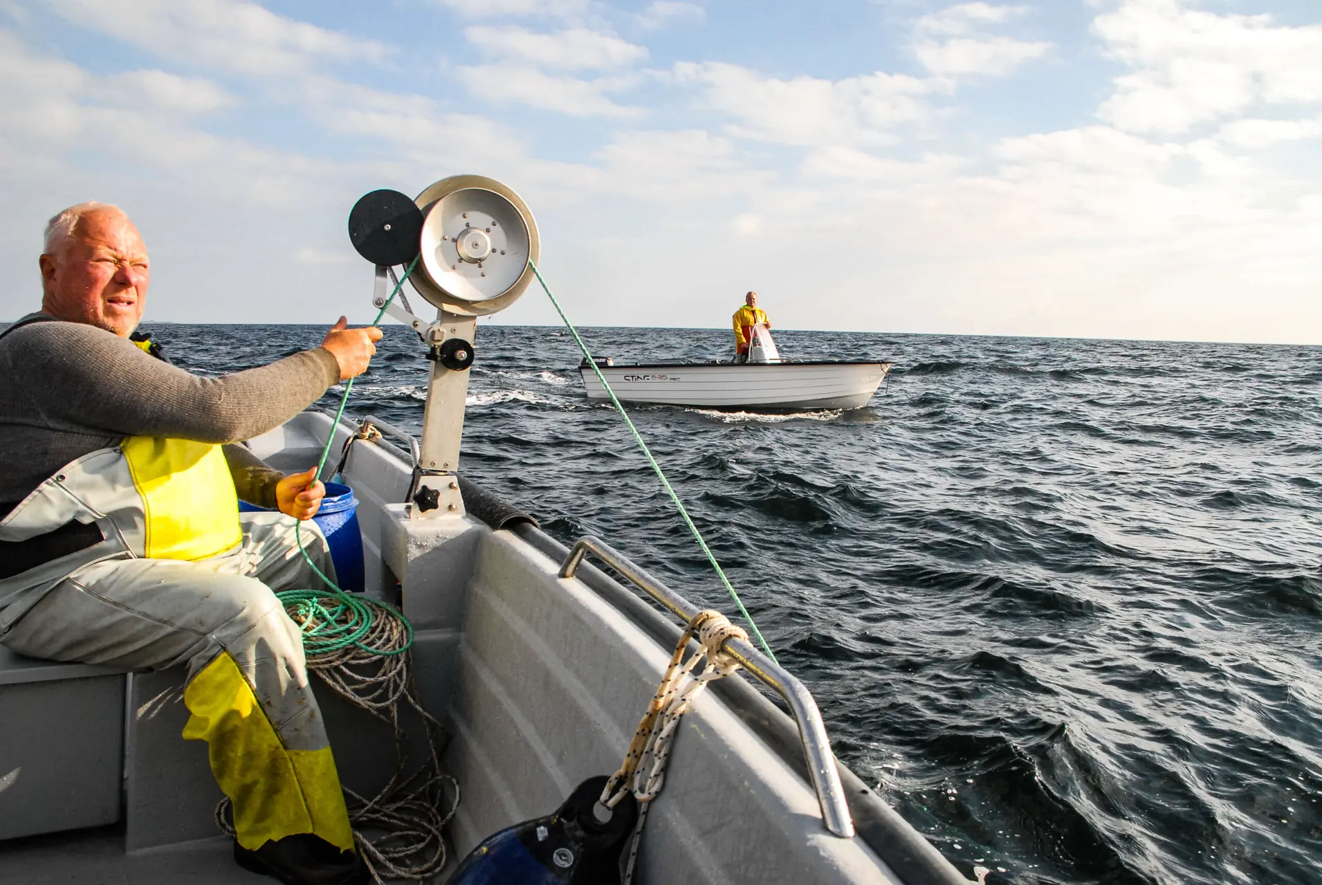 Det er mest spennende med den første teina. Du kjenner litt kribling når flytemerkene dukker opp. Der! Tauet strammer om båtshaken og teina er snart på vei om bord. Teinehaleren surrer og går og sparer ryggen for de verste påkjenningene. Men du har liksom noen ekstra krefter der og da...
