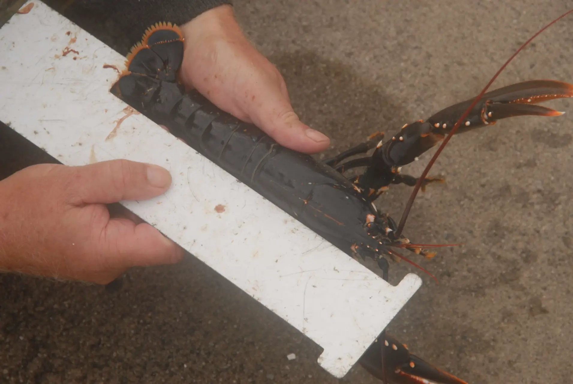 Plutselig dukker Stian, sønn nummer to opp. Han har hatt teinene i et annet område. Han smiler lurt og viser en gigantisk hummer som måles til 42 centimeter! Klart over målet for å si det mildt. Uhyret plasseres med en viss ydmykhet tilbake i sitt rette element for å fortsette avlsarbeidet.