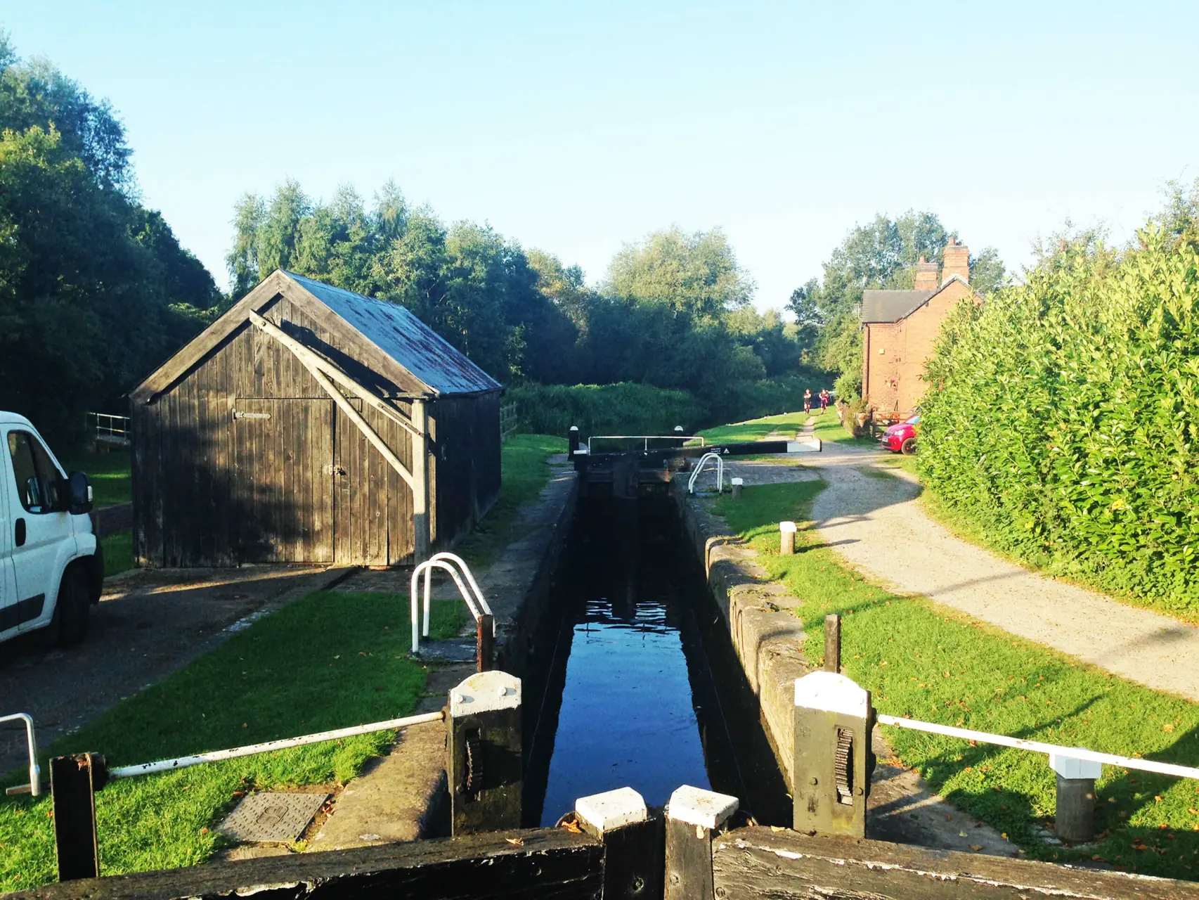 De som bor på kanalbåt finner mange løsninger på behov som måtte oppstå. Vi så for eksempel en kar som hadde konstruert sin egen geniale «vaskemaskin». Han helte tøy og vann i en bøtte, og roterte så innretningen frem og tilbake før han hang det rene tøyet opp til tørk.