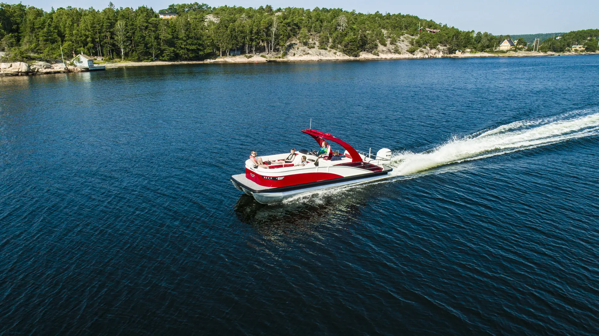 Båtene er bygget for vannsportaktiviteter, noe vi også testet med stort hell. Vi merker også at det knapt er hekksjø i planende hastighet, og hekkbølger på størrelse med det en liten oppblåsbar gummijolle etterlater seg.