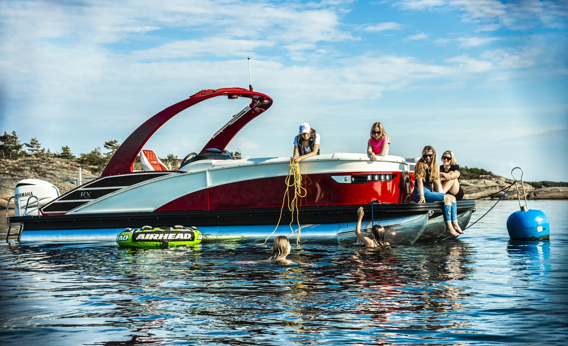 Båtens Verden har prøvekjørt Bennington RX et par solfylte dager utenfor Hvaler- og Hankøskjærgården. Modellen er 25 fot lang og 8.6 fot bred, og kan motoriseres med singel eller dobbel motor og i utgangspunktet rigges med små motorer dersom fart og akselerasjon ikke er viktig. Vår testbåt har en singel V8 på 350 hestekrefter og gjør hele 40 knop på topp og har en imponerende akselerasjon. Den løfter seg lett ut av vannet allerede rundt 10-14 knop og har ingen planingsterskel.