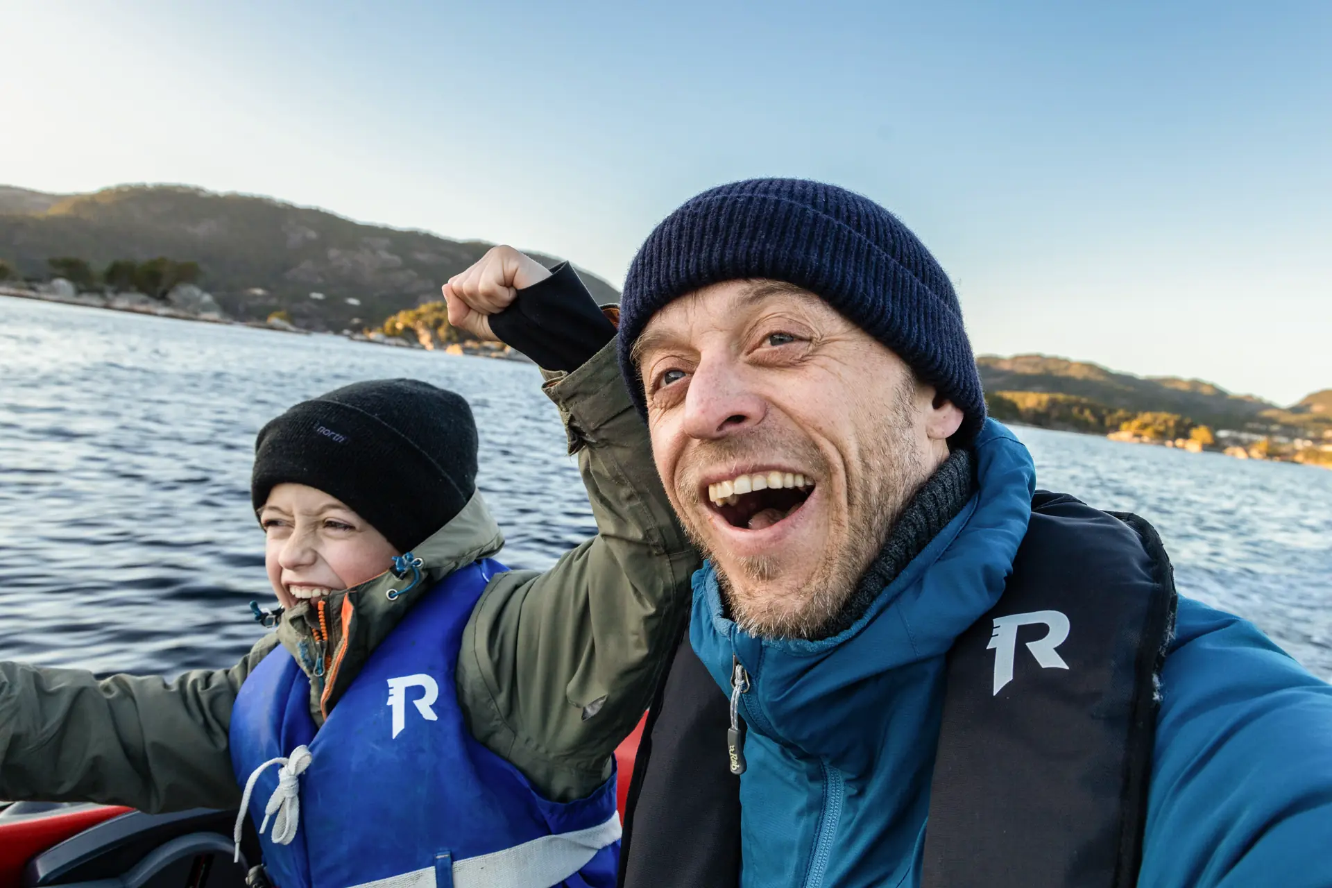 – Kom dere i båten fort som svint! Vi skal på hvaljakt! roper jeg og kaster på meg redningsvesten. Uten frokost, uten kaffe og med søvnsmuss i øynene drar vi på hvaljakt i Lysefjorden!