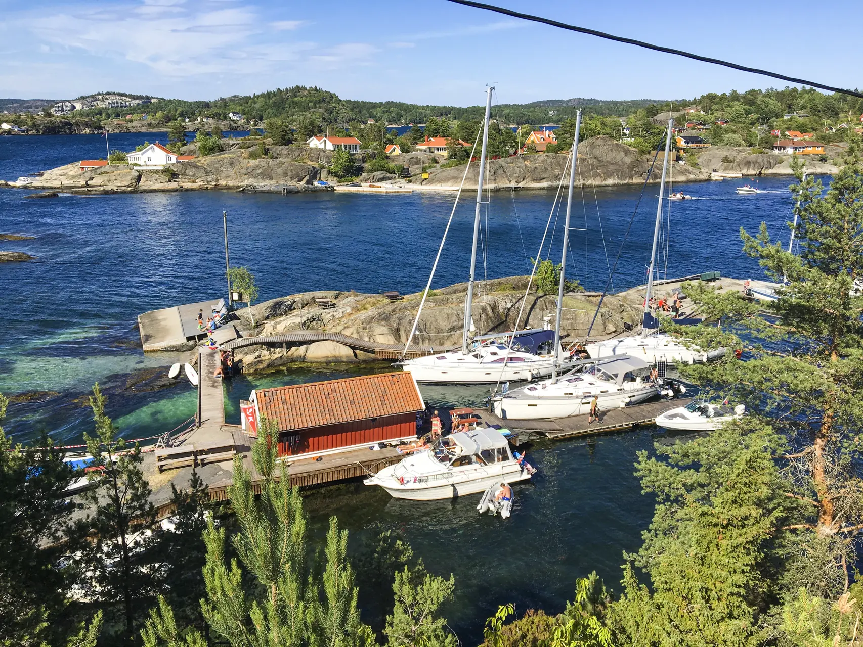 Som dere ser av bildene, gjestebåtene ligger trygt for alle vinder. Det er plass til cirka 7-8 seilbåter. Innenfor plass til ytterligere motorbåter med mindre dypgående.