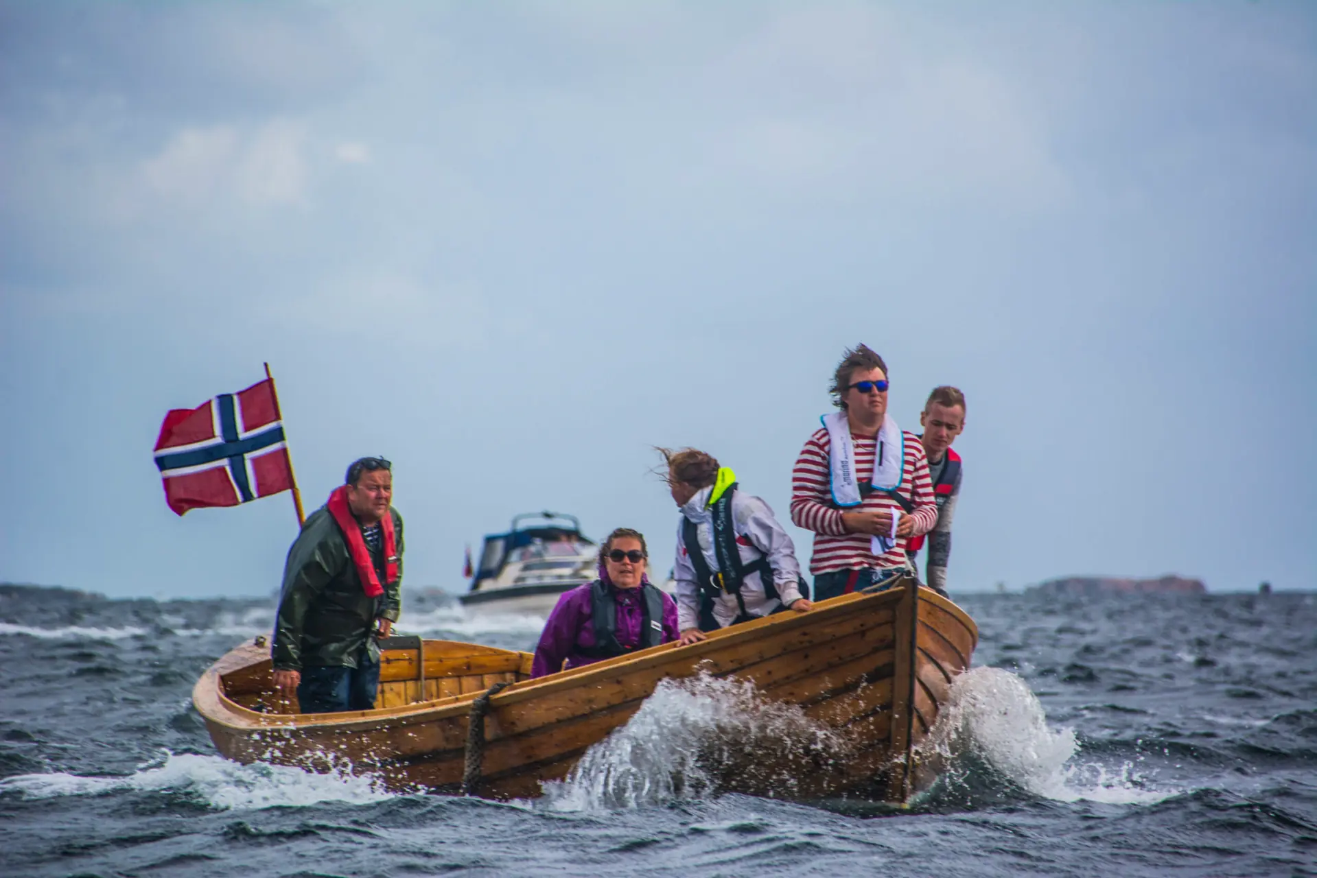 Et av de innslagene som fikk mest oppmerksomhet var gjengen ifra tresjekta «Aladdin Oil». – Som du ser har vi besøk fra Dubai, og vi er her for å lete etter olje innenfor Jomfruland, og det er jeg som ordfører av Kragerø som har fått oppgaven med å guide de rundt. Redskapene som brukes er vannkikkert og dykkermaske, men vi regner helt klart med protester fra nabolaget her, forteller kapteinen om bord – fra Porsgrunn - iført bleser, slips og et «hjemmelaget» ordførerkjede.