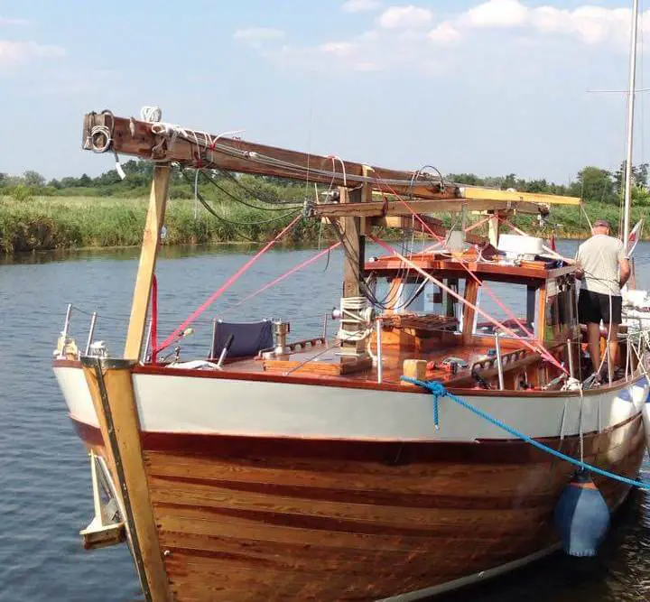 Da har vi tatt av master og lagt dem på dekk. Stor jobb på en trebåt som vår. Hjelpsomme og hyggelige folk på Promon marinaen i Stettin. I morgen begynner vi på Oder-Havel kanal.