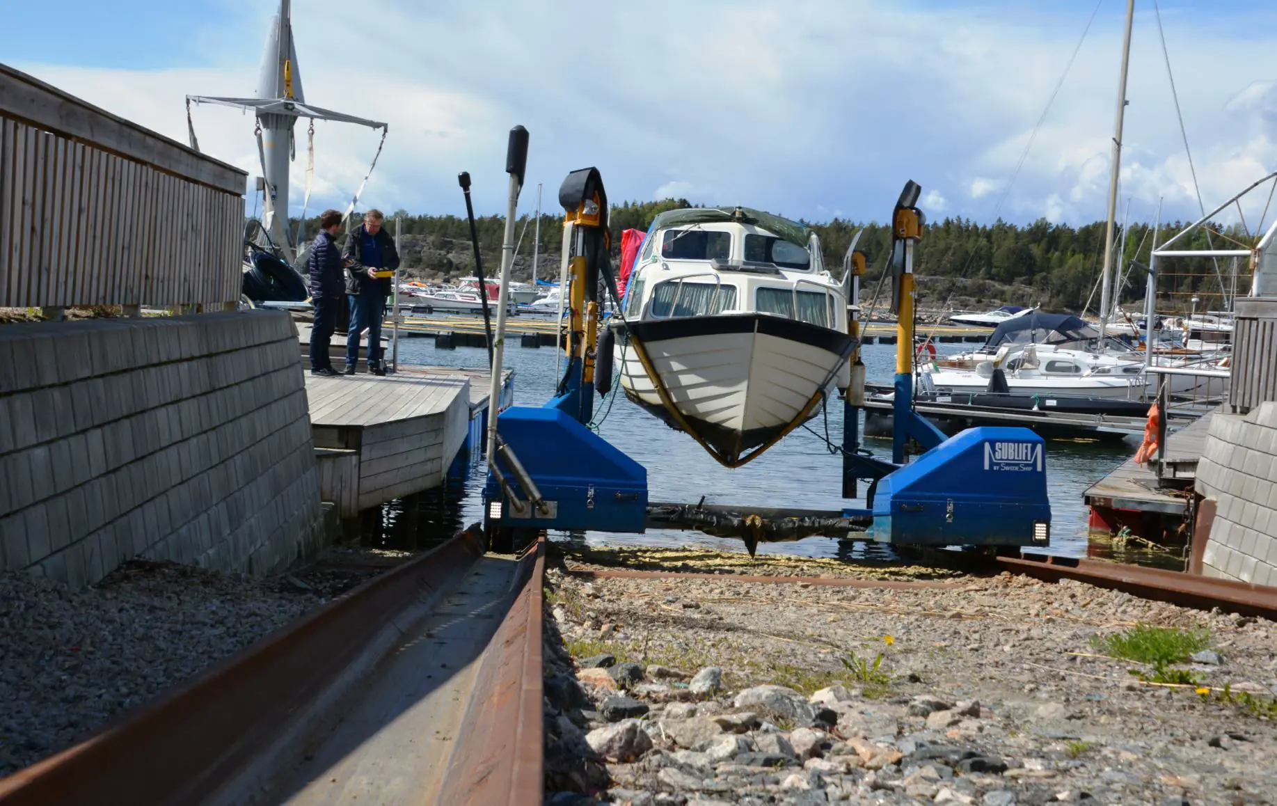 Liften drives av en tresylindret Yanmar, akkurat slik jeg hadde i seilbåten, samt en hydraulikkpumpe. Det betyr ikke mer service enn olje og filter – som vi gjør selv. Vi tok opp et lån over åtte år og medlemmene betaler som vanlig for hvert løft. Tilbakemeldingene har vært veldig bra. Mange var litt engstelige før opp- og uttak tidligere, men den frykten er over nå, forteller Hans. Og det kommer godt med – når foreningen har opp imot 180 båter i opplag hver sesong. I tillegg er det del båteiere som vinterlagrer båten hjemme eller annet sted.