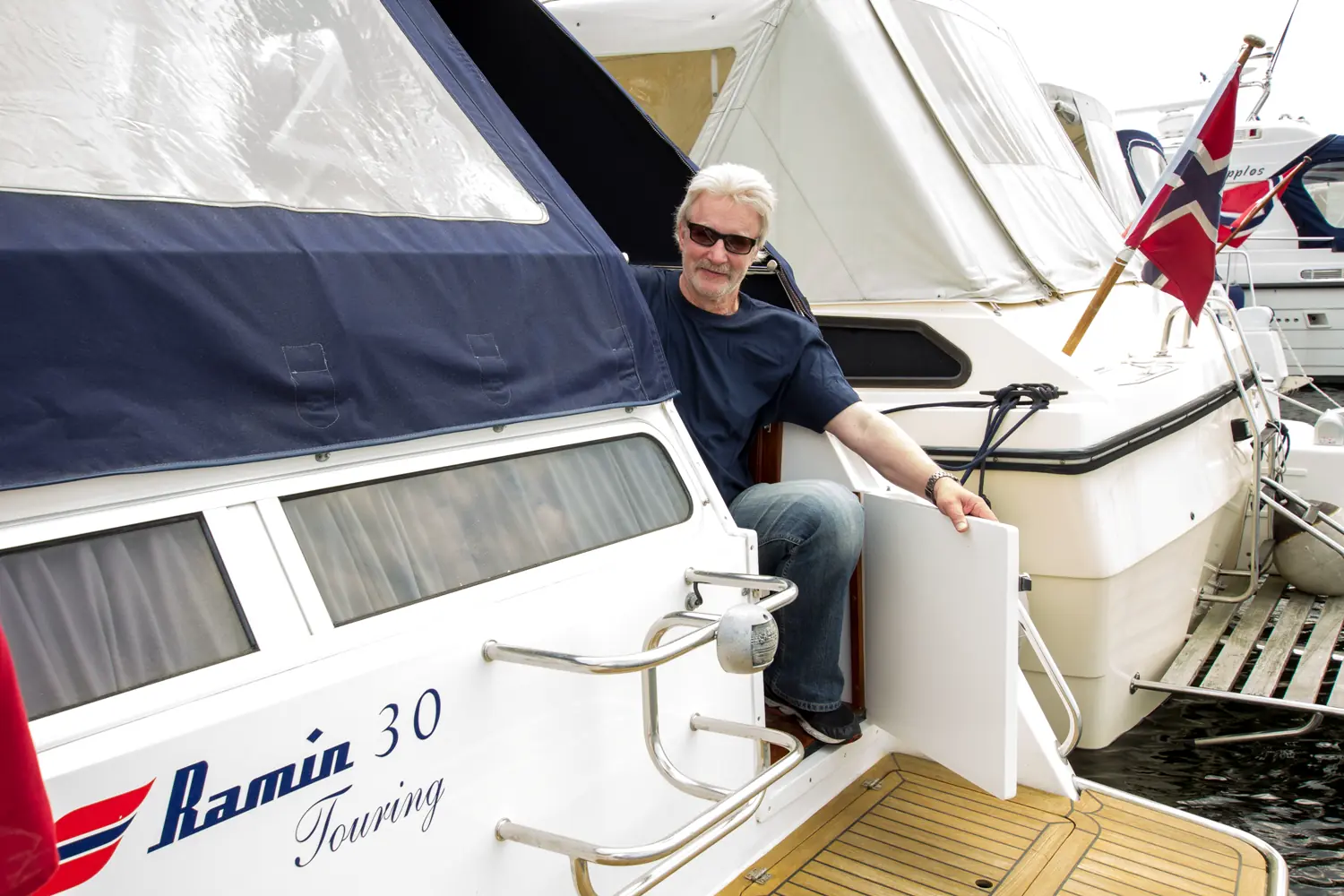 – Vi var på jakt etter ny båt begge to, og ganske så samstemte i behovsanalysen. En fornuftig familiebåt på rundt tretti fot med strak aksel. For meg sto det mellom Nidelv 28 «og noe annet, som Marex 270 og Inter 9000. Ramin 30 Touring ble en solid utfordrer med sin enkle adkomst til badeplattform, forklarer Per Ronald. Men det var stesønnen Kenneth som tok innersvingen på første objekt.