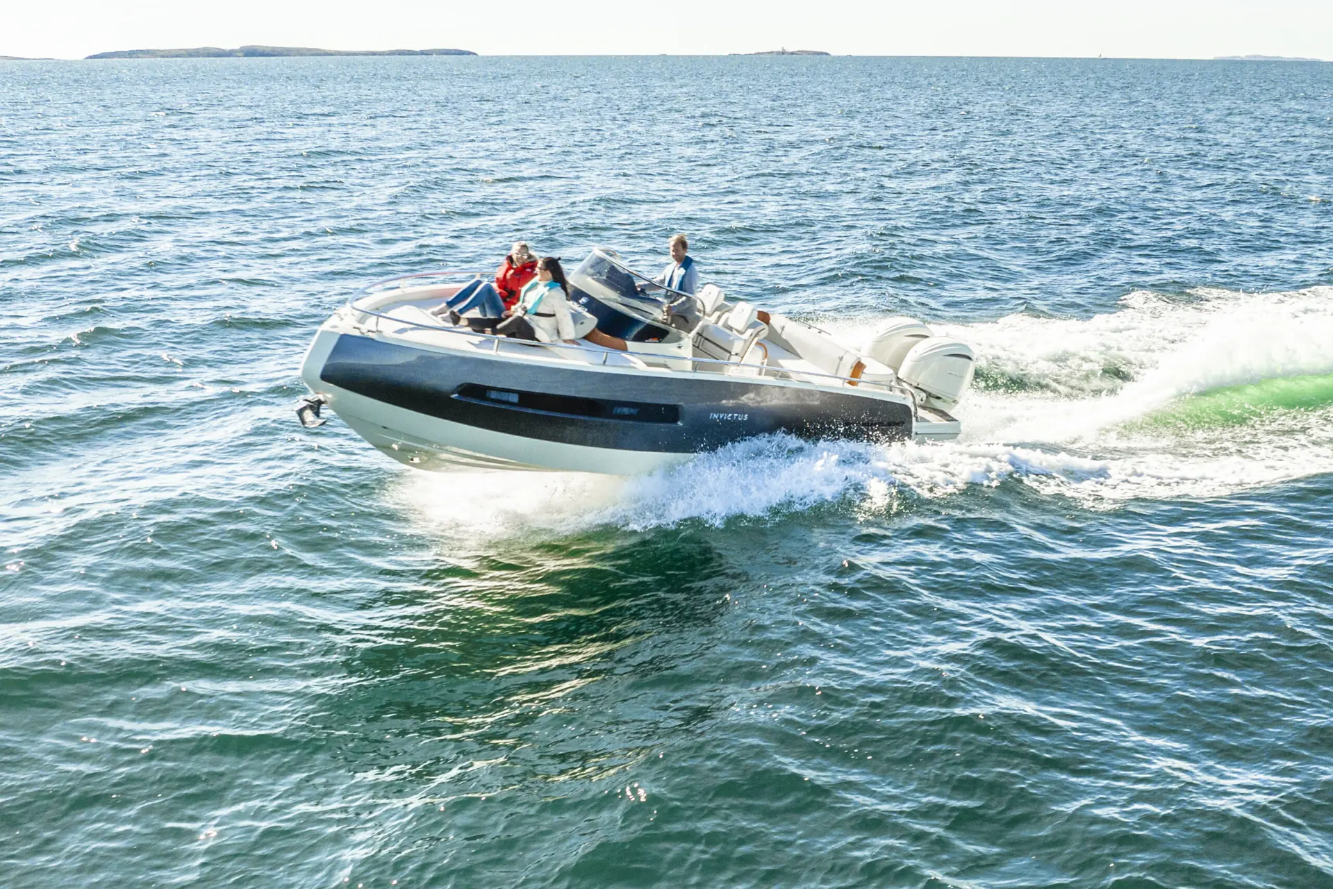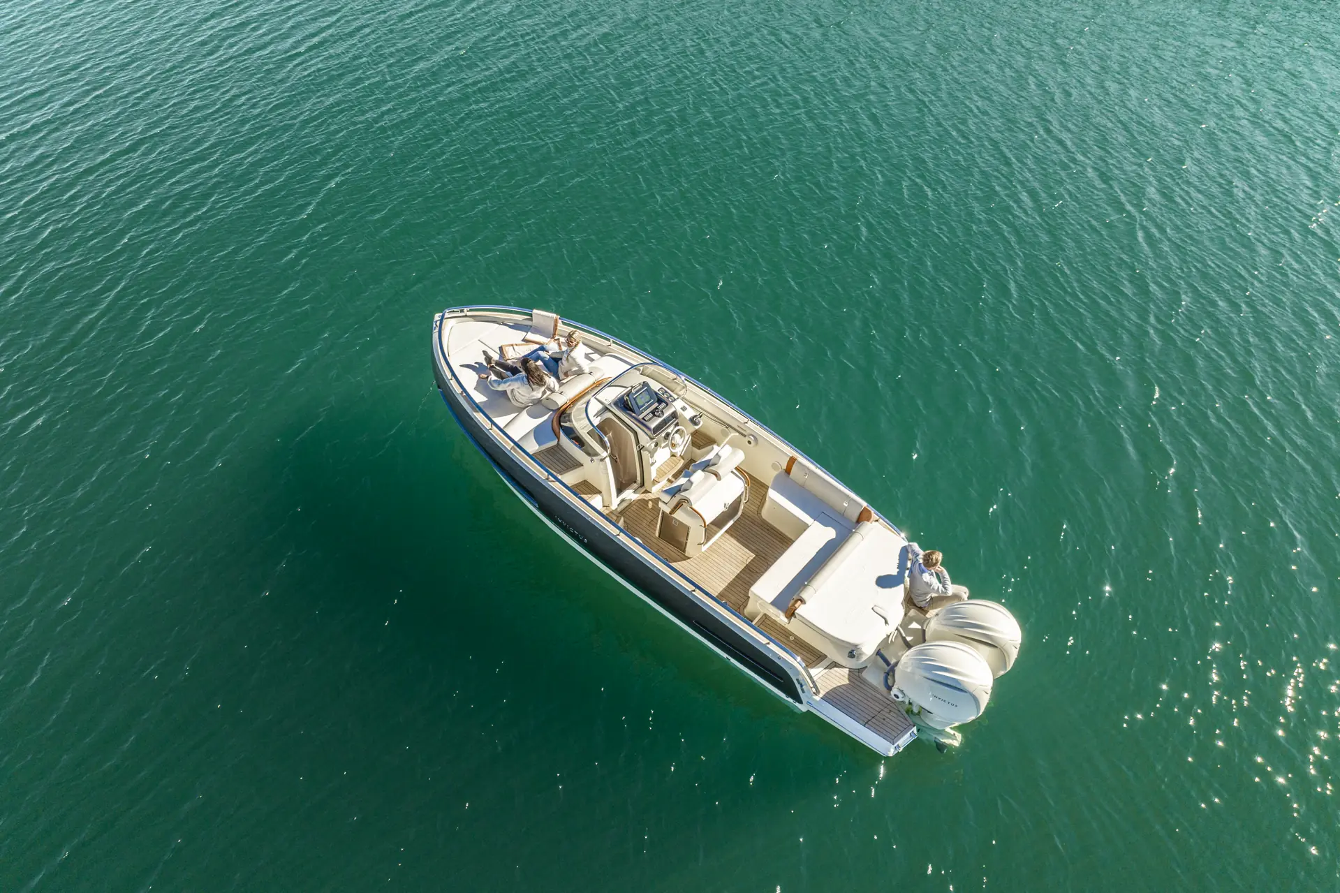 Invictus treffer ikke bare på linj-ene, men også på materialvalg og detaljer om bord. Fargekombinasjonene og materialvalgene både i cockpit og under dekk gir et eksklusivt preg. Som kunde kan du dessuten velge mellom en rekke fargekombinasjoner, både på det lakkerte skroget og på tekstilene om bord.