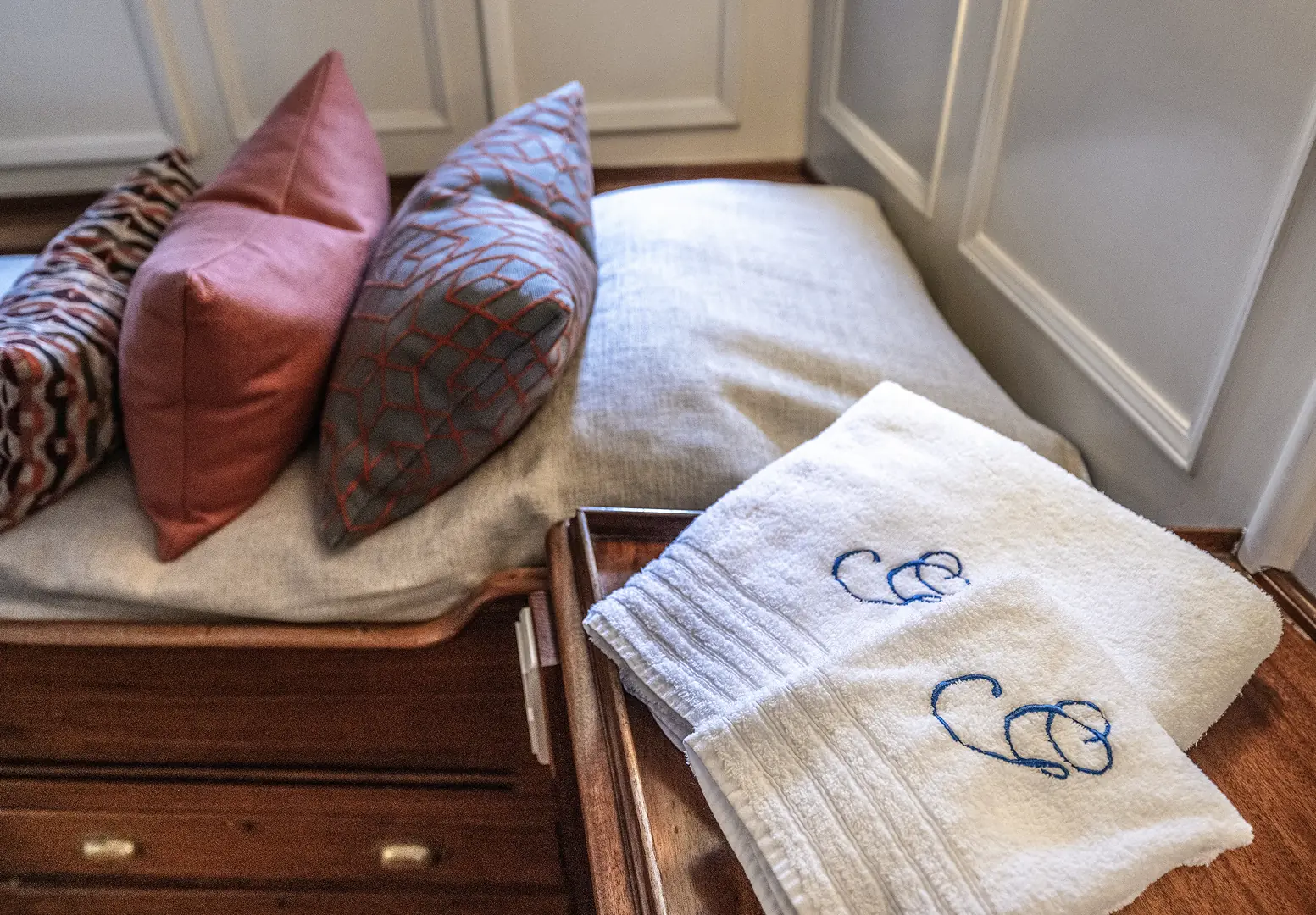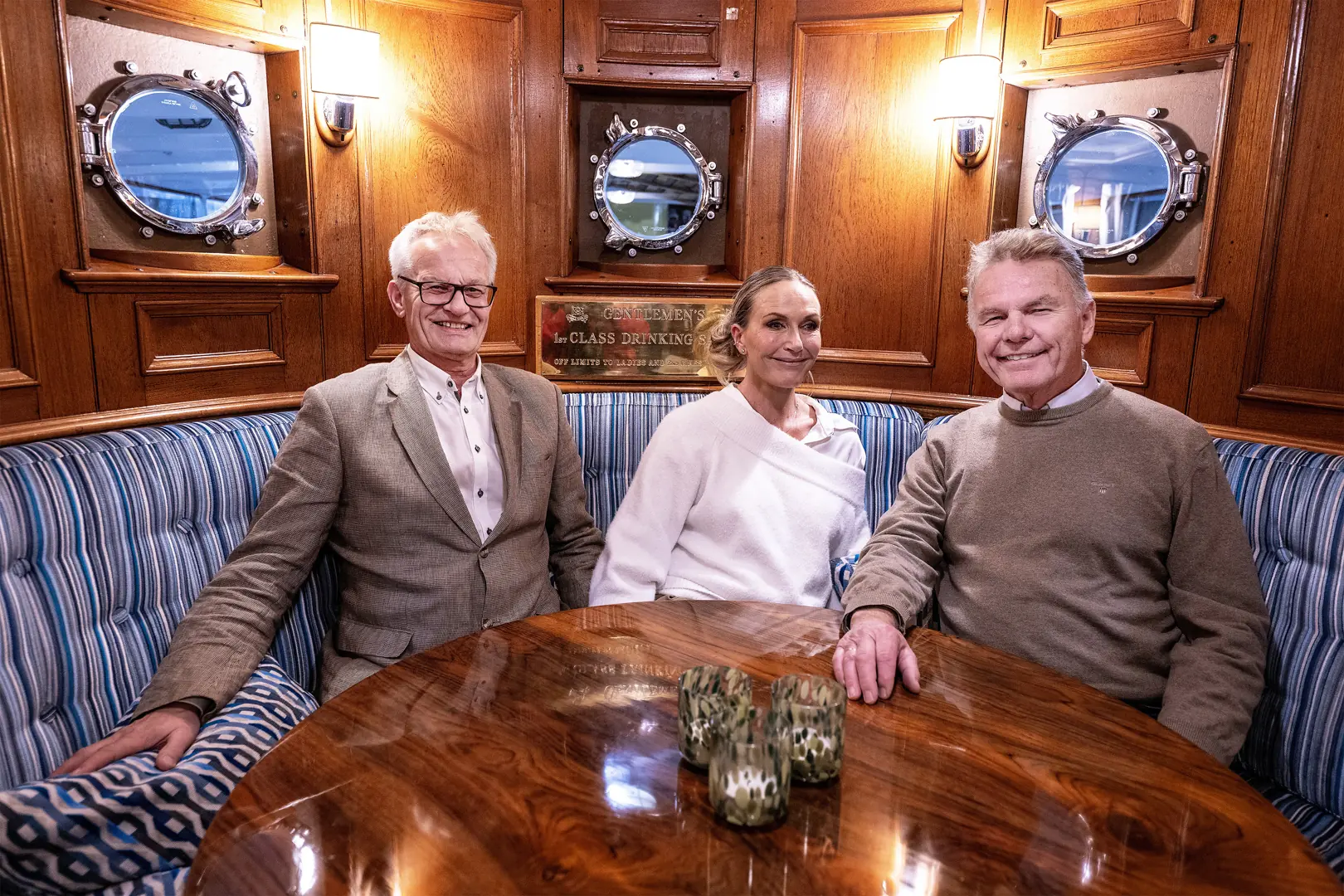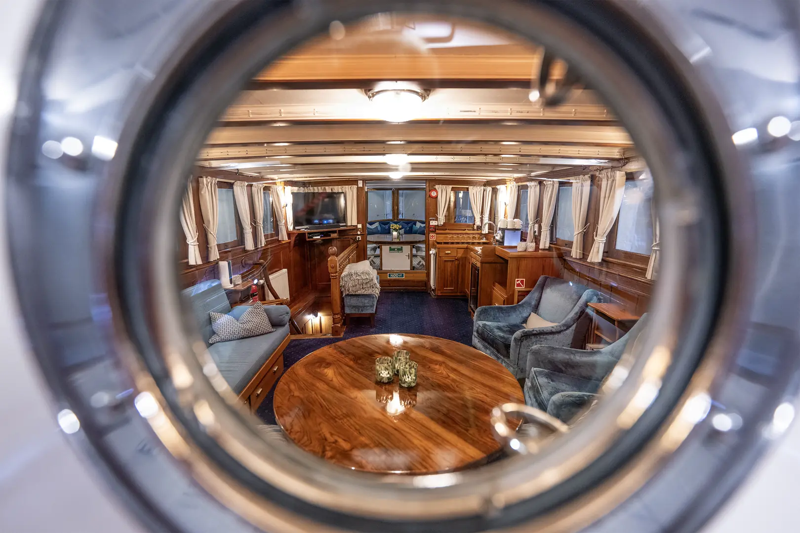 Med et fast mannskap på fire dekkes det elegant til 12 gjester til en flere retters middag, som senere kan innta kaffe i aktersalongen, eller på akterdekket. Ved bufféservering er komforten for 24 gjester slik den bør være på en slik staselig båt. På overnattingsturer er det fem lugarer med plass for åtte gjester.