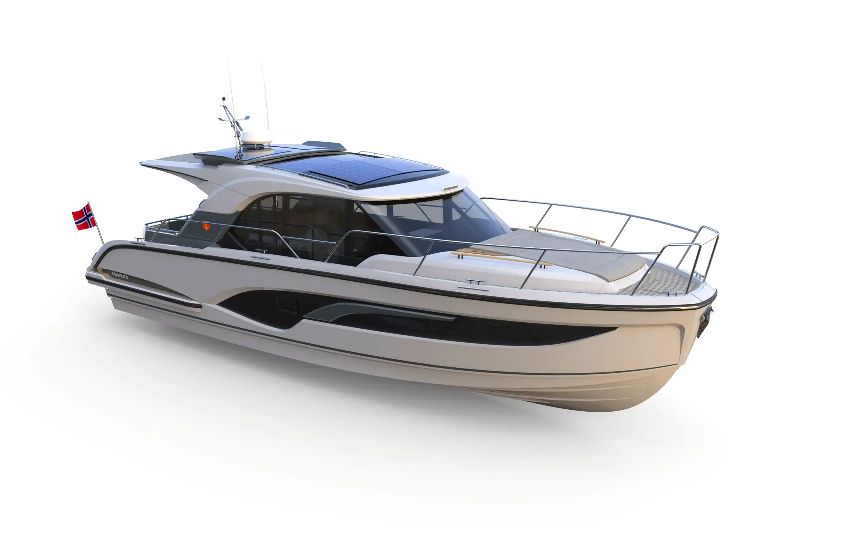 Marex har samlet inn tilbakemeldinger fra Marex-eiere og samarbeidet tett med VOM Creations og Alpha Engineering. Nyheten følger også opp lange skrogvinduer i sidene.