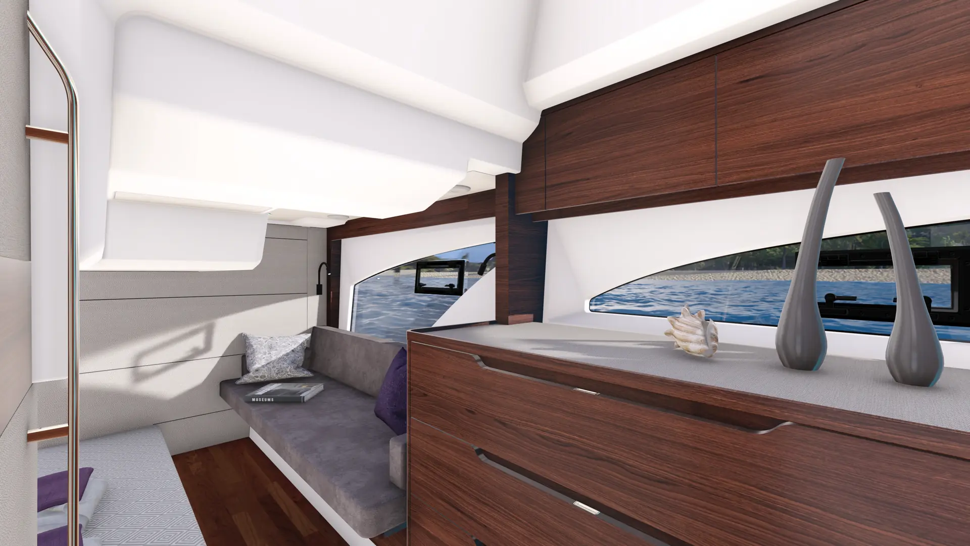 På badeplattformen har Marex prioritert å lage sitteplasser med oppbevaring under, og en ny, gjennomsiktig dør i cockpit skal slippe inn mer lys og gjøre manøvrering i havn enklere.