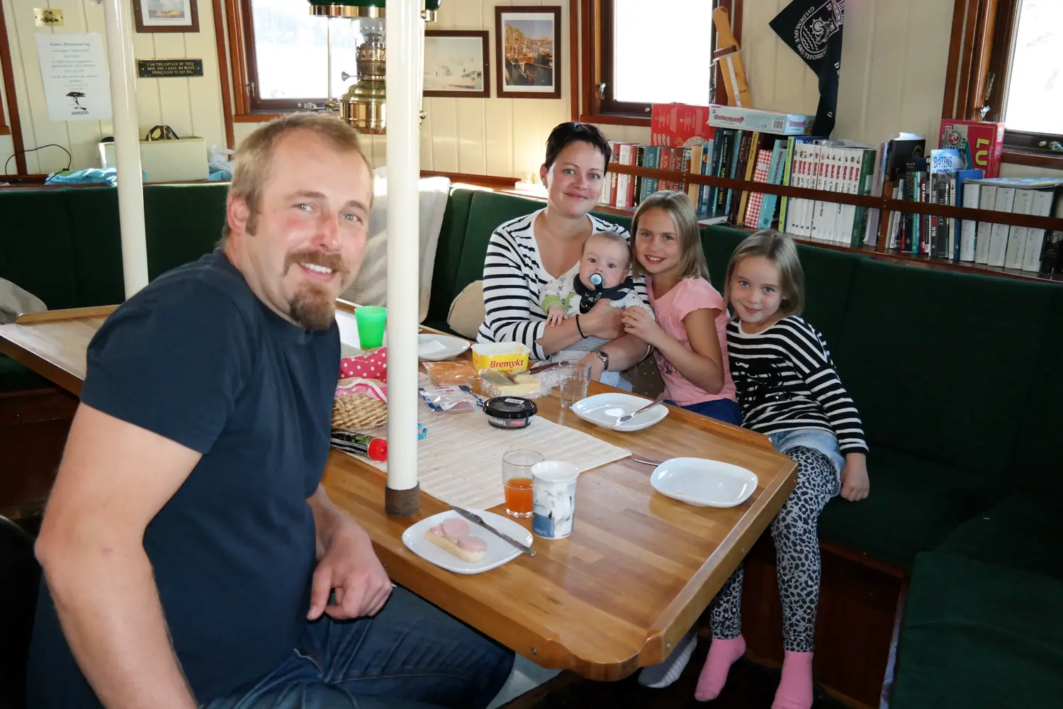 Ombord i byssa har familien en stort kjøleskap, fryser og stekeovn. Ingenting mangler. I fjor hadde familien over nitti overnattingsdøgn ombord. Over alt er det romslig med plass og ingen behøver å gå oppi hverandre. Jentene Idun og Ane er blitt skikkelige båtjenter og vet allerede mye om familiens båt. De forteller at de har sett «Gamle Øksnesværing» på YouTube.
