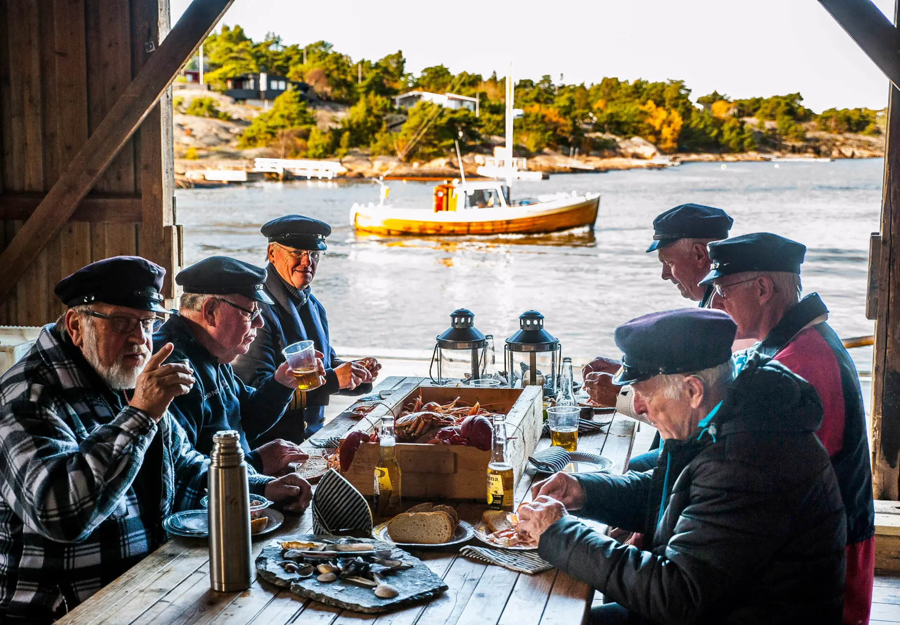 Da Onsø-beviset ble etablert som forening i 1992 var målet å ta vare på de tre sjøbuene, bøyenaustet, stakenaustet og fyrbua. Den siste ble bygget like etter fyret, som en redskapsbu og er avgjort den eldste. De to andre ble bygget av Merkevesenet etter 1900 for å holde sjømerkene i orden. Bøyer og staker ble tatt opp av sjøen og fraktet hit til bua for ”overhaling”. Bøyenaustet er derfor bygget som en slipp. Staker ble heist opp med talje i mønet på stakenaustet og dratt inn gjennom skyvedøra i gavlveggen. Også plassen mellom buene ble brukt til lagring, skraping og maling av staker.