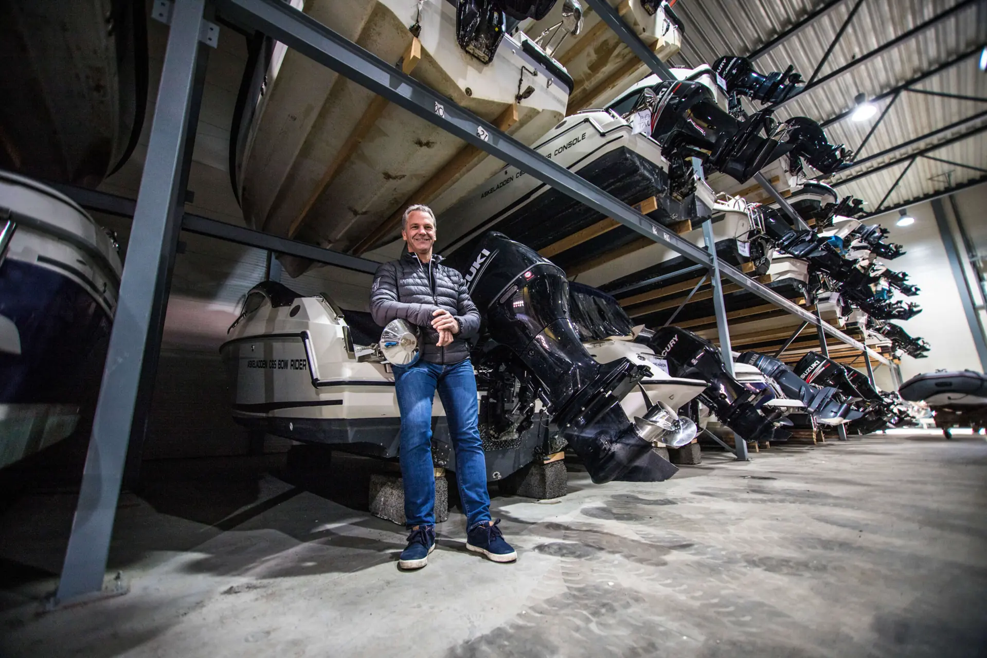 For å vise oss den store satsningen blir vi derfor med Kurt til Råde, noen kilometer unna butikken. Her har Leeres Motorsport bygget båthotell og vaskehall, skreddersydd til formålet. Inne er det plass til cirka 96 båter, i tillegg til plassene utvendig. I år teller Kurt hele 170 båter i opplag.