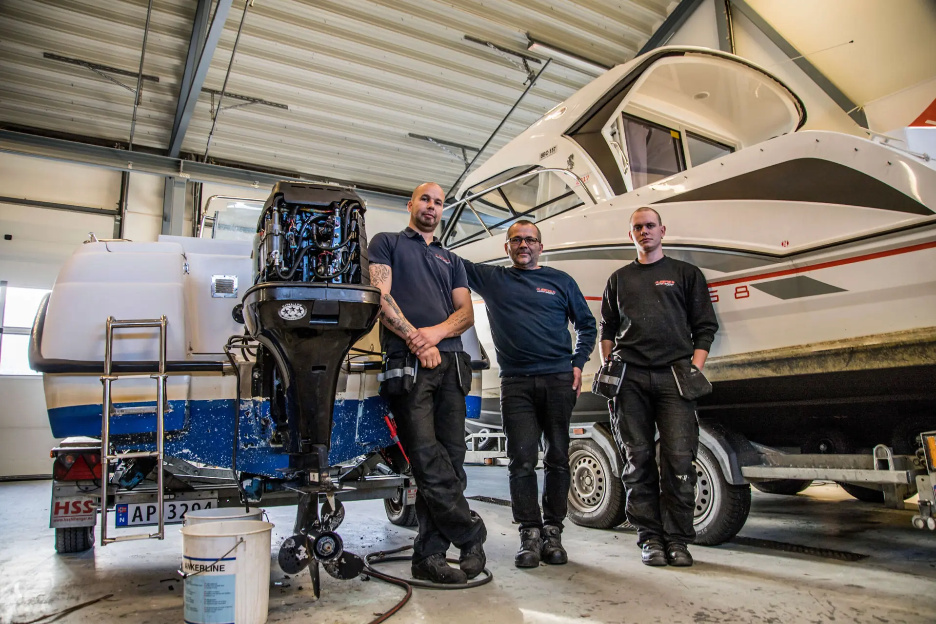 – Vi har vært lojale og satset på noen merker. Askeladden og Uttern har fulgt oss i lang tid. Uttern var vi blant de første som solgte her i Østfold, og er på salgstoppen her på huset. Det har vært gode og stabile merker som har fulgt trendene i markedet. Det være seg styrhusbåter, påhengsmotor på akterspeilet og større motorer. For tretti år siden var gjerne den første båten en fjorten-foter med 30 hester, mens den i dag kanskje begynner på 20 fot og med 115 hestekrefter, sier Leere. Han ser også klare tegn på at flere ønsker å bruke mindre tid på selve båtholdet, noe som har gitt et nytt og viktig forretningsbein til butikken – nemlig båtopplag og service.