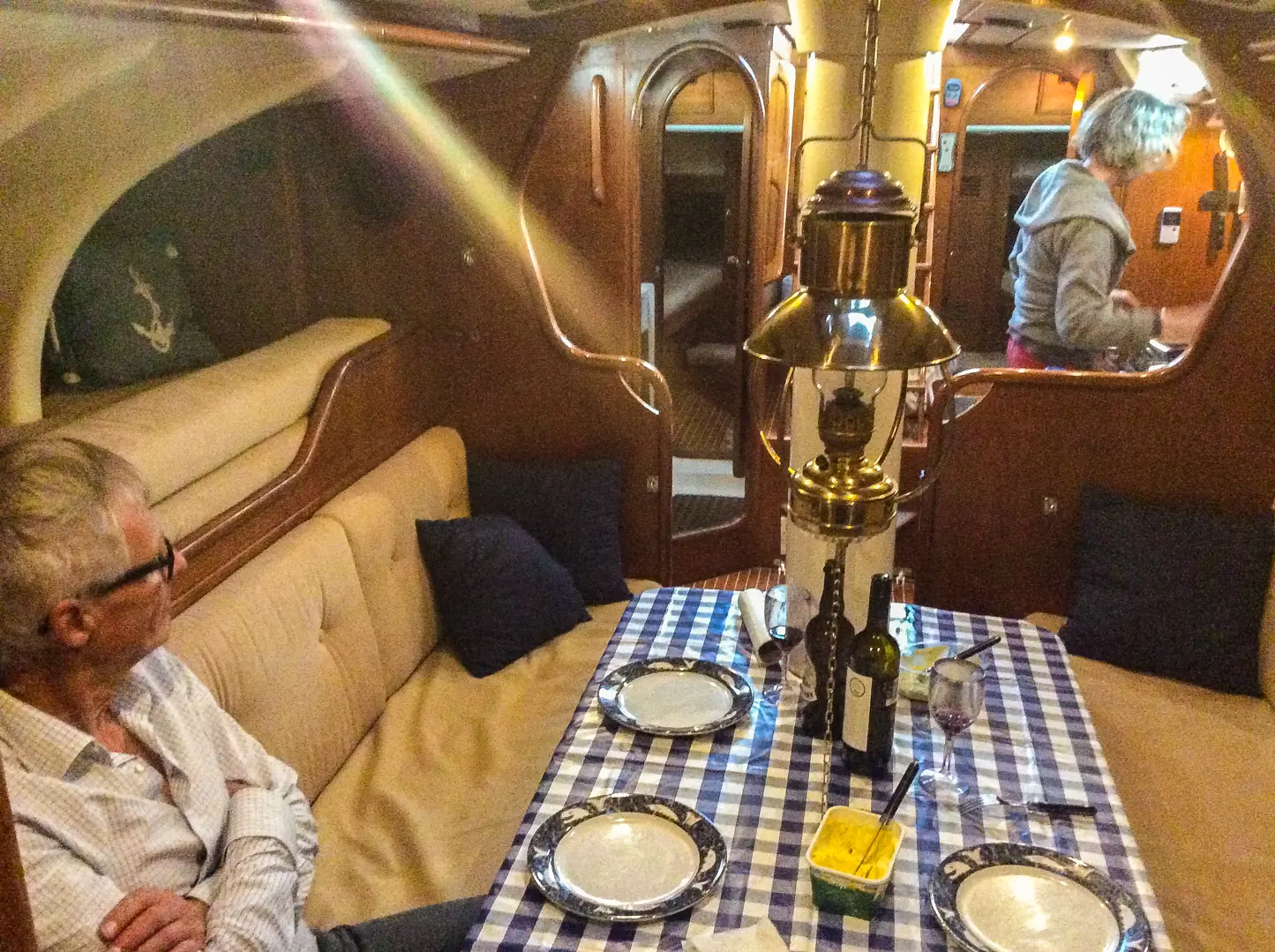 Det er mor, Liv som er raceren med symaskinen. Hun har sydd alt fra puter og gardiner og som stort sett holder standarden under dekk. Familieprosjektet funker perfekt. Pappa Sigurd, er nå pensjonist og millionær....i tid, er familiens handyman og skriver ikke timer på alle utbedringer både over og under dekk. Da snakker vi både om det tekniske og skutas finish.