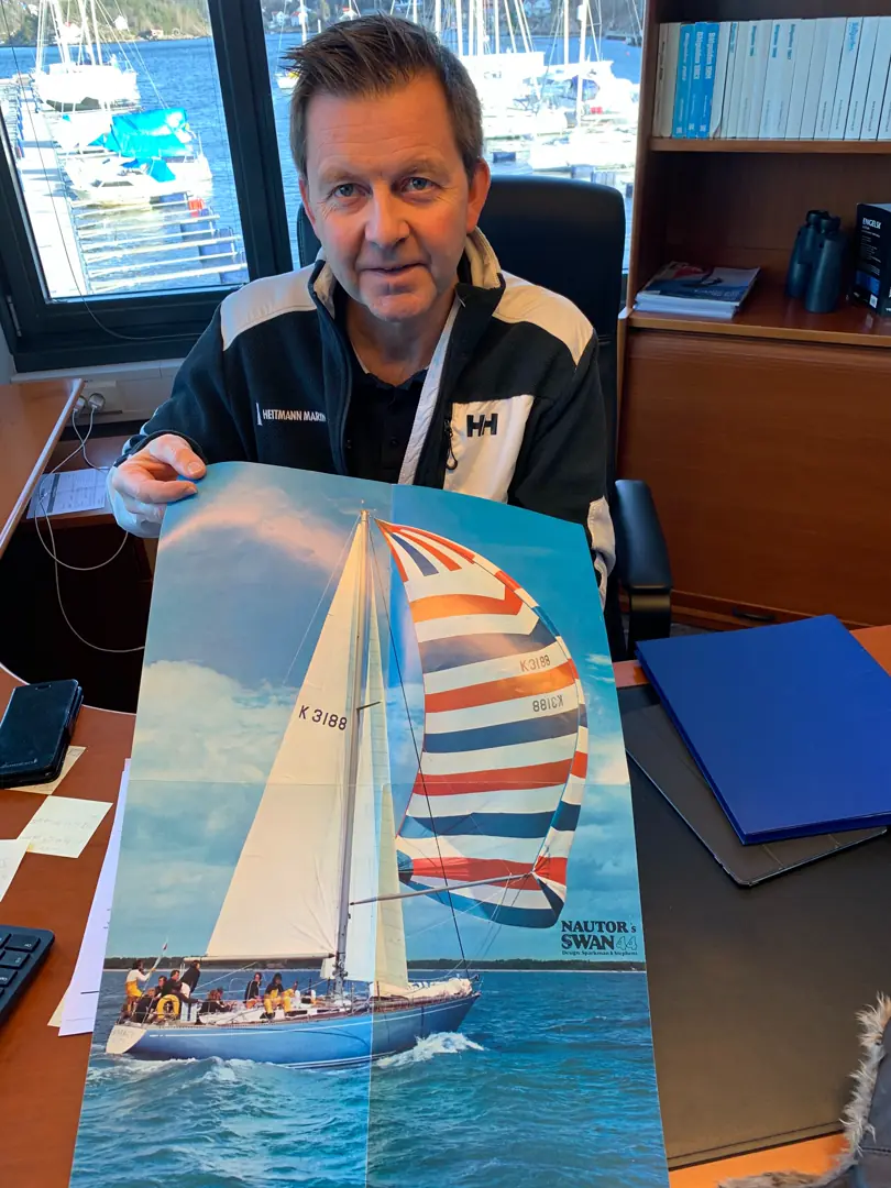Jens Petter Flesvik: Den første båten var Swan 36. Den er tegnet av Sparkman & Stephens, som mange av etterfølgerne. Opprinnelige var den tegnet langkjølet, men Nautor fikk dem til å lage delt lateralplan. Dette var den første serieproduserte i glassfiber. Det ble en innertier. Båten var diger, til 36 å være. At den vant alle 5 regattaene i Cowes Week i ‘67, ja feide bordet rent, helt overlegent, la alt til rette form den suksessen og omdømmet Nautor har hatt i alle disse snart 60 årene.