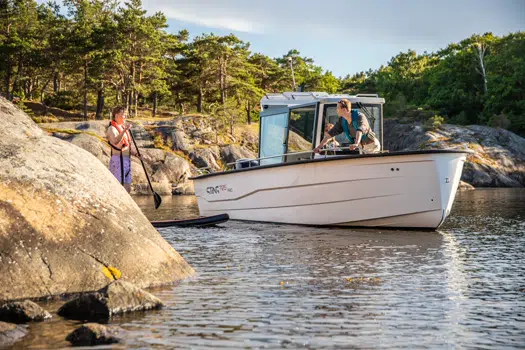 Båten er godkjent for syv personer og utstyres med motor opp til 300 hk. Fra-pris er 1 290 000,-.