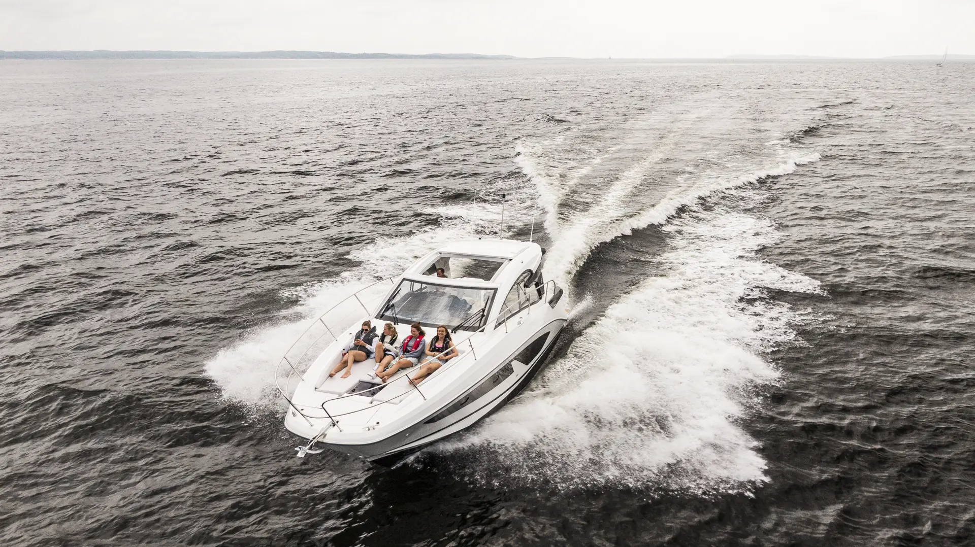 Vi har kjørt båten i cirka 150 nautiske mil, men i rolig sjø annet enn hekkbølger fra andre båter. Førsteinntrykket er at båten virker godt sammenskrudd og stummere enn de tidligere sportscruiserne fra produsenten.