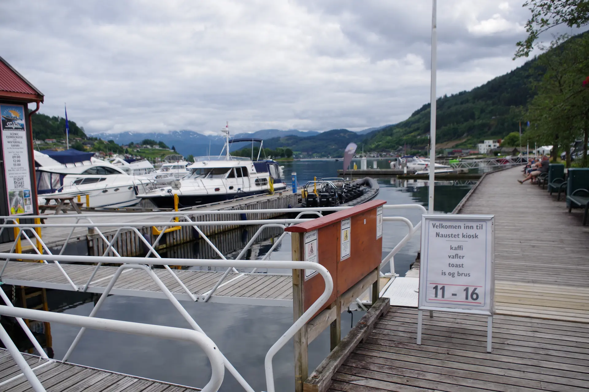 – Det er en lun havn, nesten vindfri. Her er nærhet til alt du trenger, butikker, mat, klær, hotell og vinmonopol, alt i gå avstand. I tillegg er det veldig mange fine turer du kan gå, til Fossen, og rundt vannet.