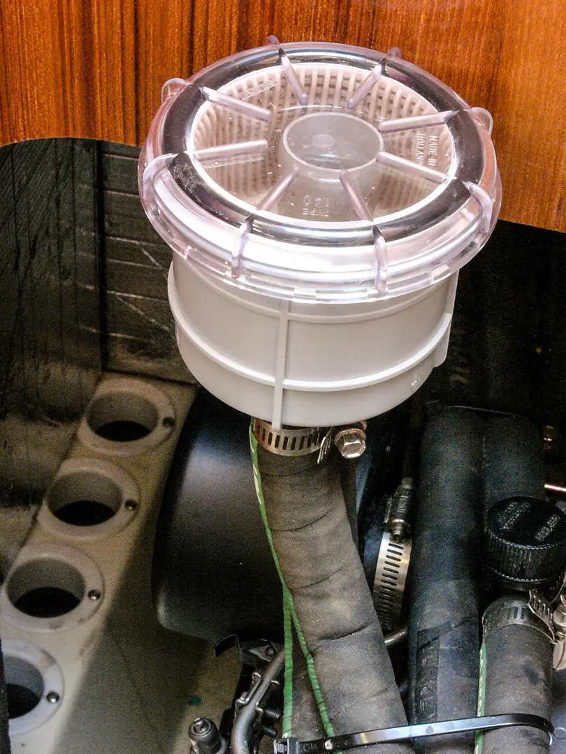 - Tett sjøvannsfilter. Det er som regel lett å komme til for å sjekke og rense. Det sitter som regel under vannlinjen, så du må stenge sjøvannsinntaket før du åpner filteret.