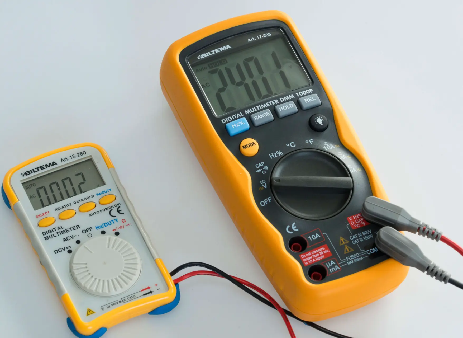 Noen instrumenter velger automatisk spenningsområde som skal måles, og om det er likestrøm eller vekselspenning. Ellers må du velge om du selv velge det. DC er likestrøm (12 V), AC er vekselstrøm (230 V). Ved vekselstrøm er det likegyldig om du bruker den svarte eller røde pinnen mot kontaktpunktene. Ved likestrøm skal du i utgangspunktet sette den røde pinnen på måleledningen mot pluss, og den svarte mot minus (jord). Det skjer ikke annet enn at du får et minus tegn foran volt-verdien om du bytter om.