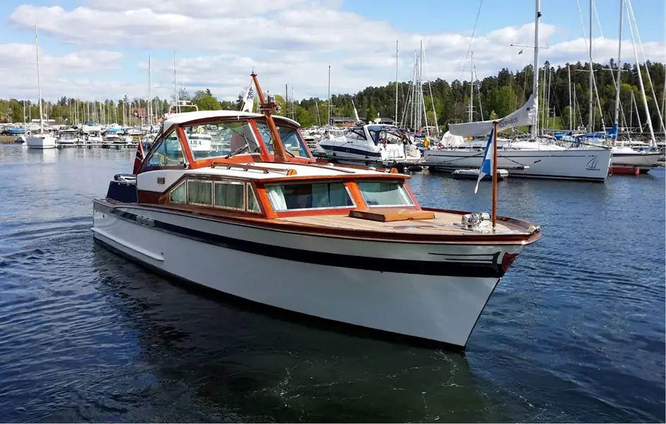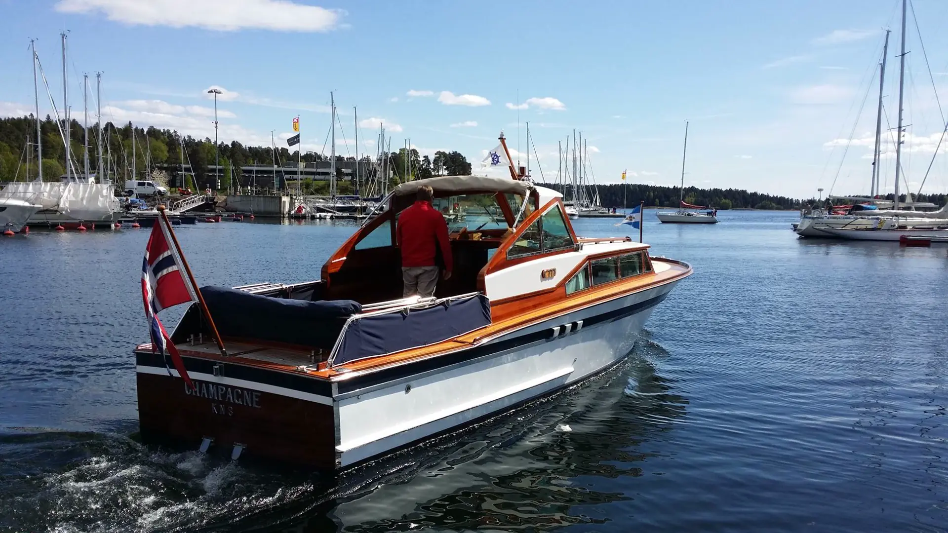 – Vi kjøpte båten i 1981, forteller Kim Krohg. – Bestemor, far og jeg dro egentlig for å se på en hytte i Hallangspollen. Hytta falt ikke i smak, men da vi like etter kom over Champagne på Landøya, var vi solgt. Linjene var så vakre at vi ikke kunne la henne gå fra oss.