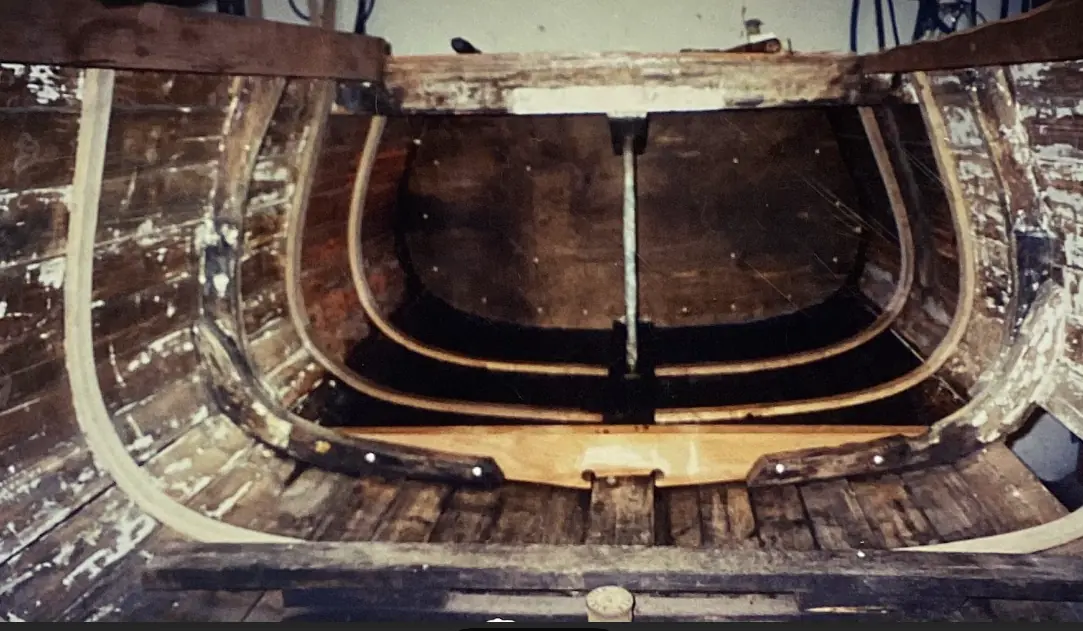 Tilstanden var svært dårlig. Knekte spant og stort hull i skrogsiden skremte likevel ikke meg og restaureringen startet i 2004.