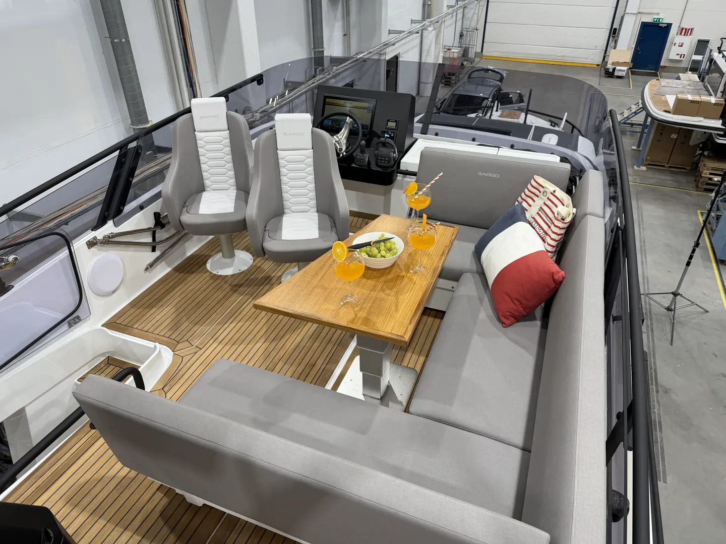 En romslig U-sofa skal gi sitteplass til fire-fem personer. Seteryggen kan vippes slik at ytterligere to får sitte i fartsretningen, og med det elektrisk senkbare bordet kan sofaen gjøres om til solseng. Totalt skal det i følge Sargo være sitteplass til åtte personer.