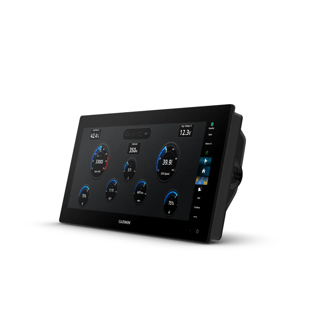 15-tommeren er 74 % bredere enn en standard 9-tommers kartplotter. Den er optimalisert for å vise applikasjoner side om side og bruker sidefeltkontroller slik at du kan tilpasse og se flere data uten å bytte skjermbilde.